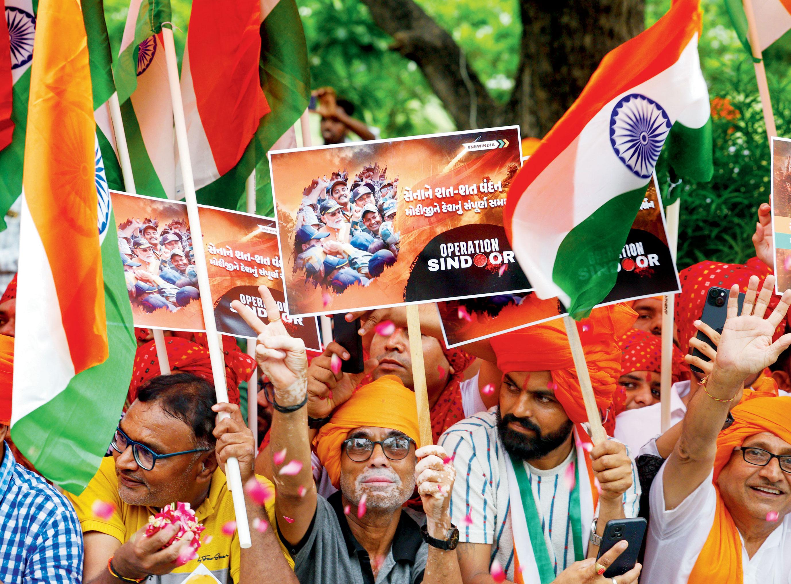 ગાંધીનગરમાં જાણે ૧૫ ઑગસ્ટ અને ૨૬ જાન્યુઆરીની ઉજવણી થતી હોય એવા દેશભક્તિના માહોલ સાથે ઑપરેશન સિંદૂરની સફળતાને લોકોએ વધાવી