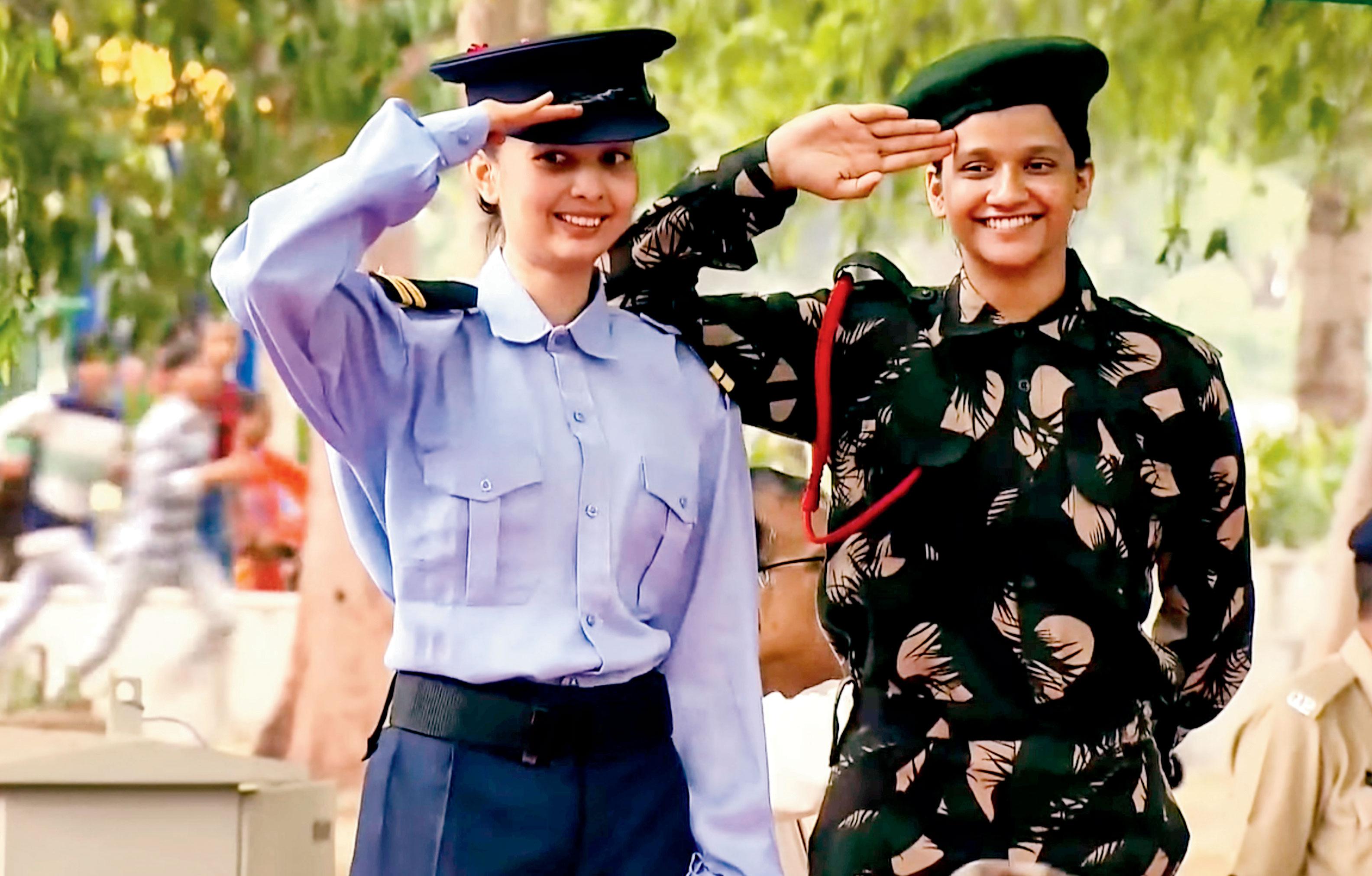 ભારતીય આર્મ્ડ ફોર્સિસની વીરાંગનાઓના વેશમાં આવી હતી કેટલીક યુવતીઓ.