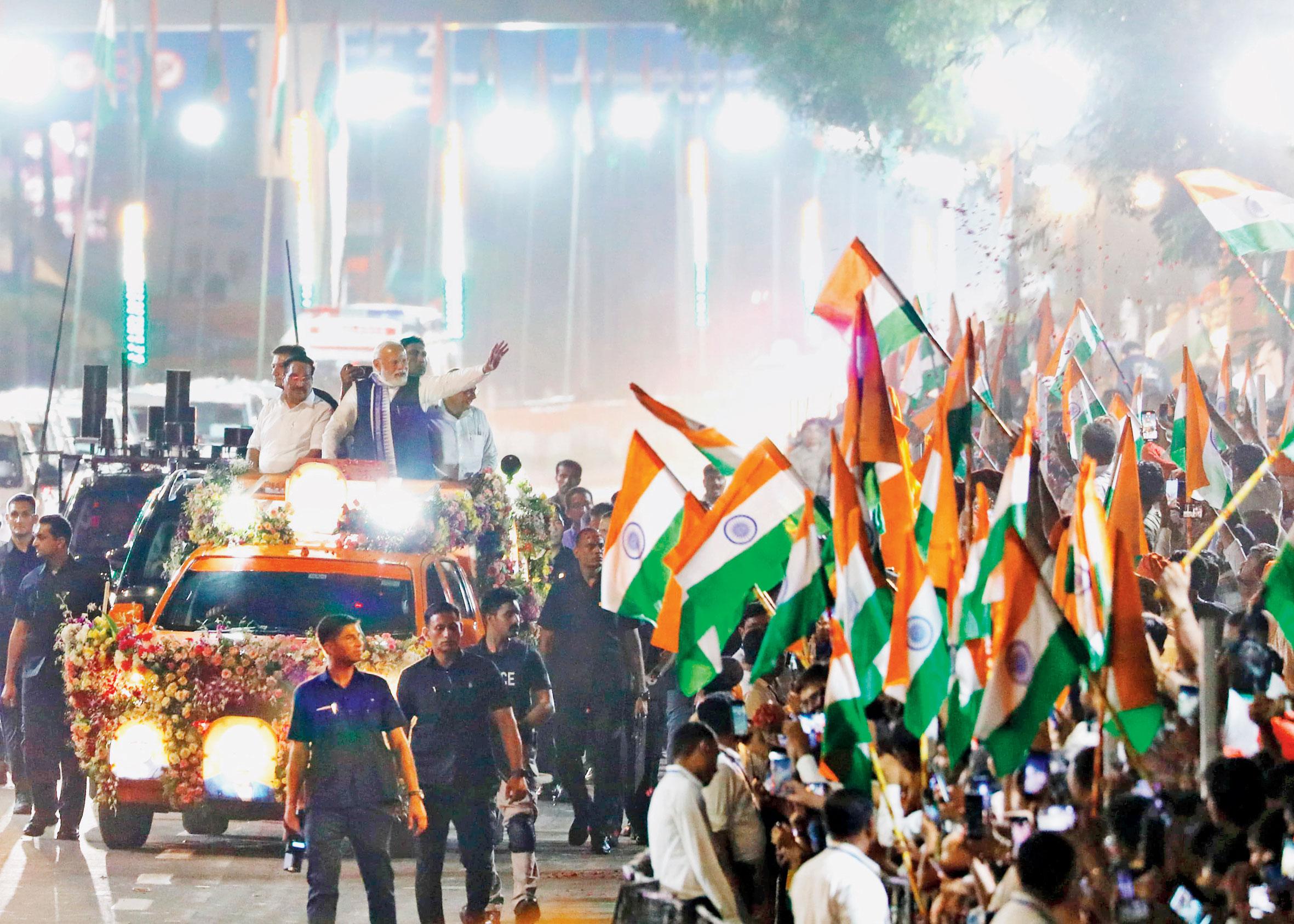 વડોદરા, ભુજ અને અમદાવાદમાં મોટી સંખ્યામાં લોકો વડા પ્રધાનને સન્માનવા અને અભિવાદન કરવા ઊમટ્યા : રોડ-શોમાં જ્યાં જુઓ ત્યાં તિરંગા અને ગુલાબની પાંખડીઓની પુષ્પવર્ષા : અમદાવાદમાં કેસરી જીપમાં યોજાયો રોડ-શો