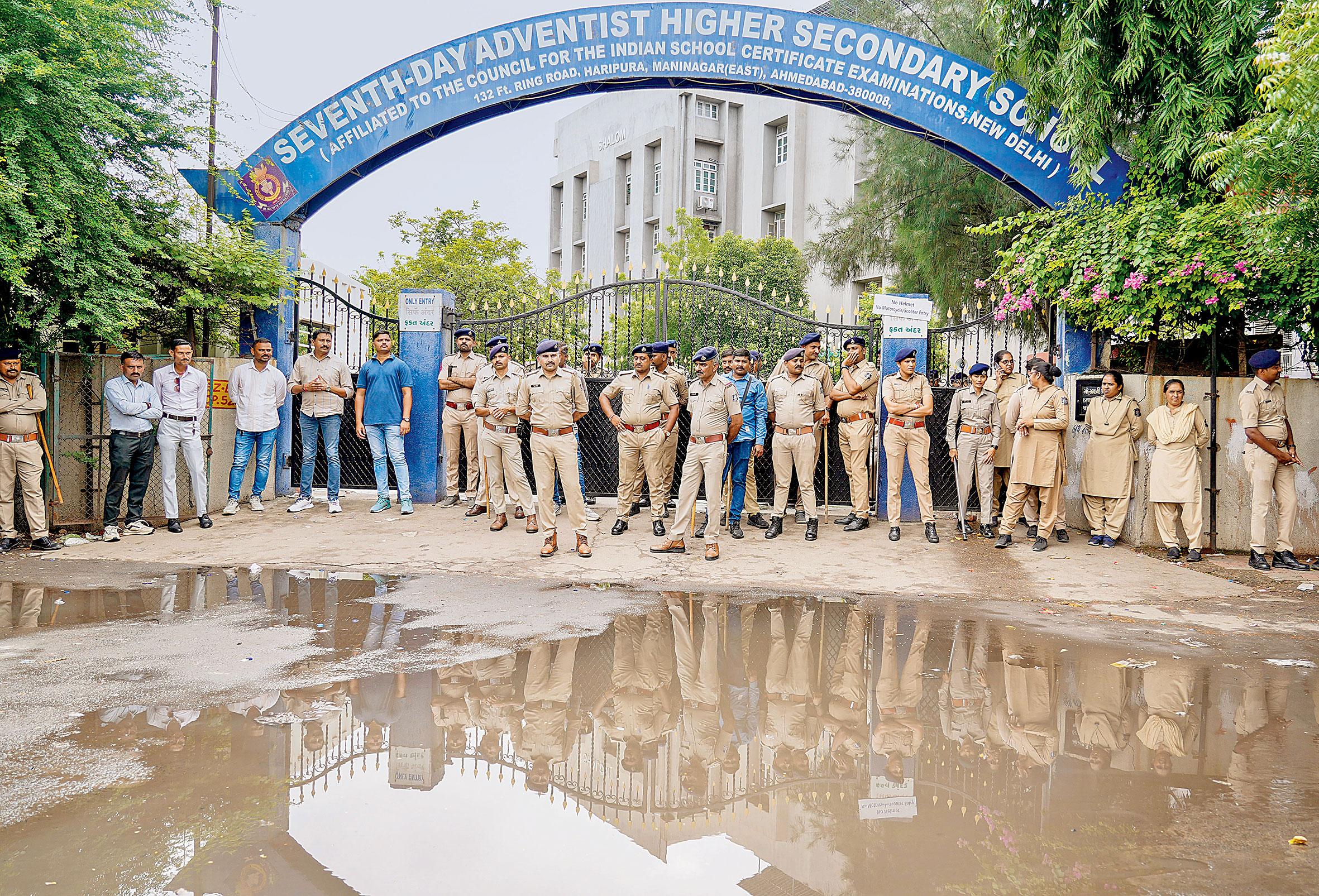 સેવન્થ-ડે ઍડ્વેન્ટિસ્ટ હાયર સેકન્ડરી સ્કૂલ પાસે પોલીસ-બંદોબસ્ત ગોઠવાઈ ગયો હતો.