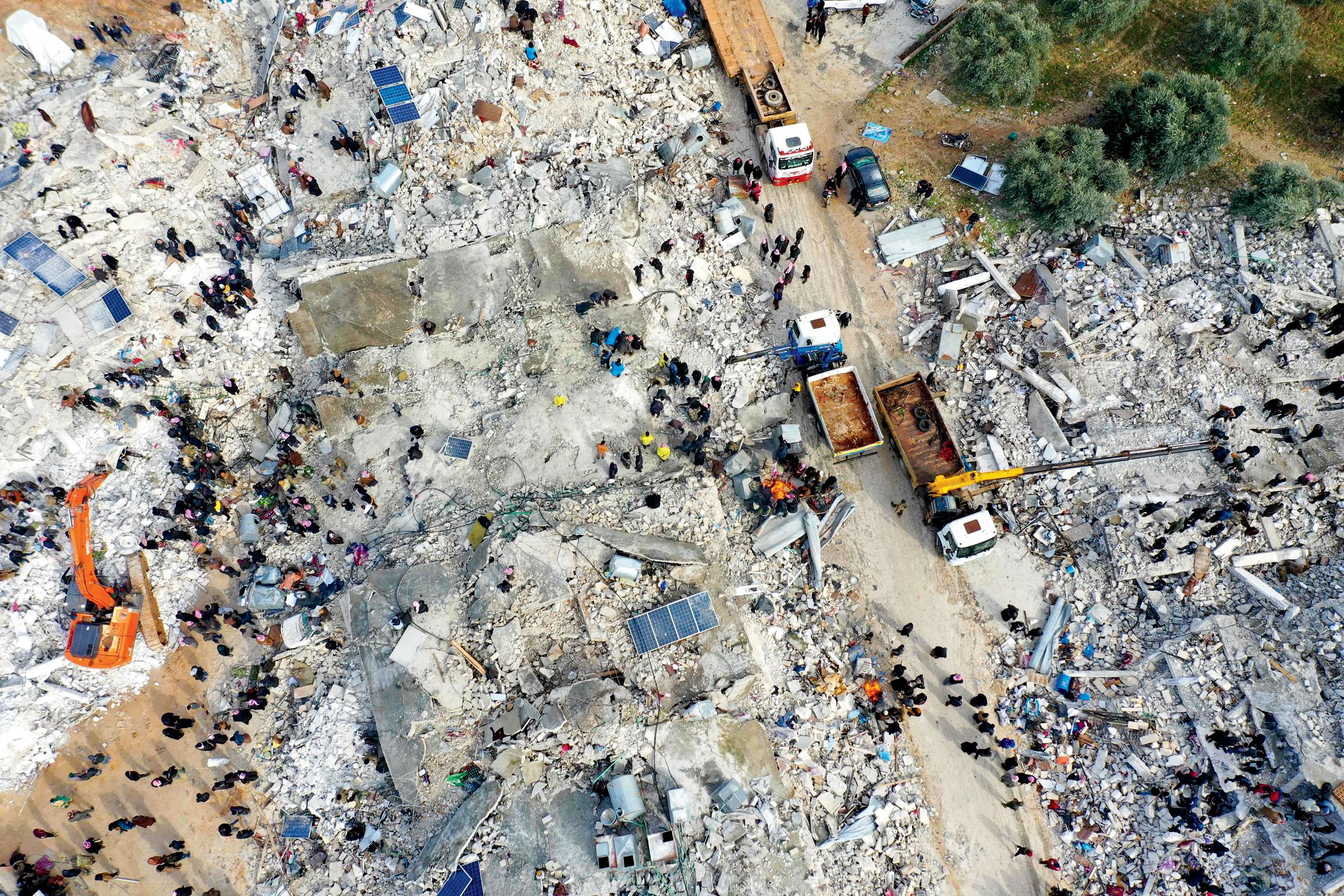 સિરિયાના બોસ્નિયામાં ભૂકંપને કારણે ધરાશાયી થયેલા વિસ્તારનો એરિયલ શૉટ