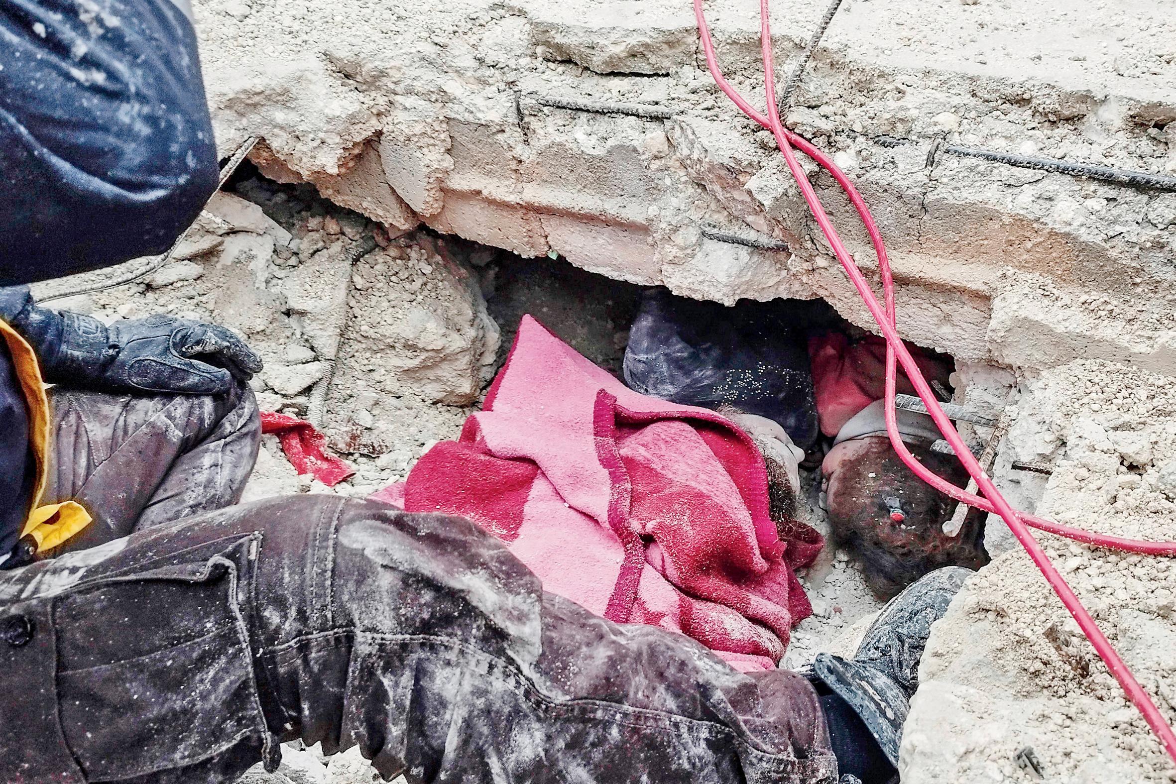 ટર્કી અને સિરિયામાં સેન્ચુરીના સૌથી ભયાનક ભૂકંપે હજારો લોકોને હંમેશ માટે મોતની ઊંઘમાં પોઢાડી દીધા હતા. ૭.૮નો આ ધરતીકંપ એવો ભયાનક હતો કે જ્યાં જુઓ ત્યાં મોતનો જ ખેલ હતો અને નિષ્ણાતોના મતે હજીય આફ્ટરશૉક તો અનુભવાતા જ રહેશે, જેમાંના કેટલાકની તીવ્રતા વધારે પણ હોઈ શકે. સવાલ એ થાય કે ટર્કી અને સિરિયાનું લોકેશન એવું કેવું કે ત્યાં આવી તારાજી સર્જાય છે? સિરિયાના અલેપ્પોના આફરીન શહેરમાં કાટમાળમાં ફસાયેલી ઇન્જર્ડ છોકરીને લોકોએ બહાર કાઢી હતી.