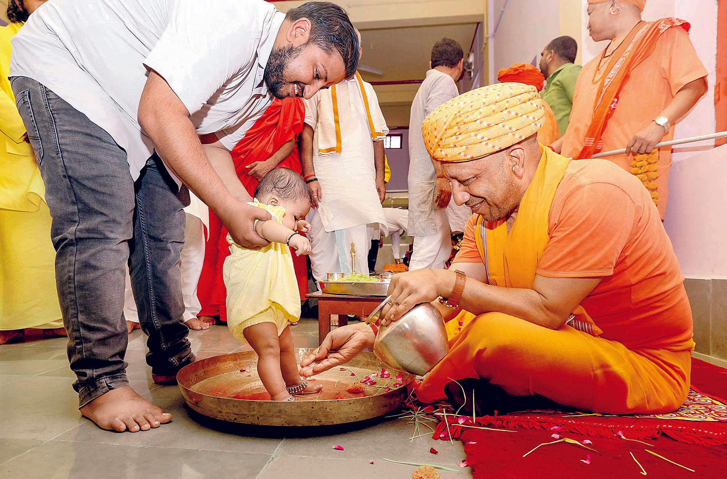 ઉત્તર પ્રદેશના ગોરખનાથ મંદિરમાં મુખ્ય પ્રધાન યોગી આદિત્યનાથે કન્યાપૂજનની વિધિ કરી હતી. નવરાત્રિની મહાનવમીના પવિત્ર પર્વે તેમણે પરંપરા પ્રમાણે બાળકીઓના પગ ધોઈને ચરણપૂજન કર્યું હતું.