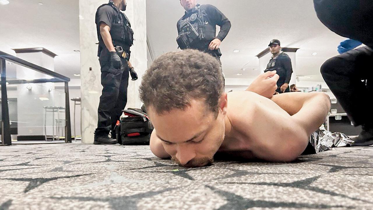 બૉલરૂમ તરફની લૉબીમાં એક માણસ બંદૂક અને ચાકુછૂરી જેવાં હથિયારો સાથે ઘૂસી આવ્યો હતો.