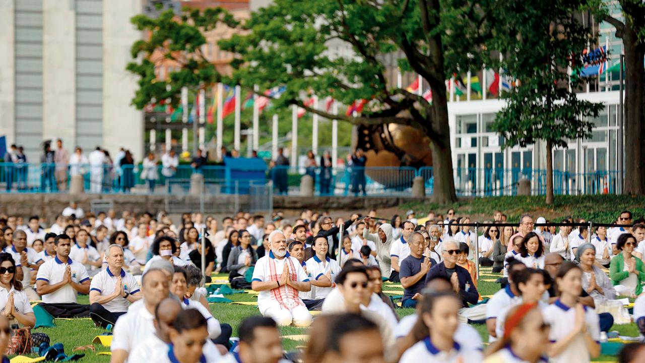 ન્યુ યૉર્કમાં સંયુક્ત રાષ્ટ્રના મુખ્યાલયની બહાર ઇન્ટરનૅશનલ યોગ ડે નિમિત્તે ઇન્ટરનૅશનલ સેલિબ્રેશન દરમ્યાન વડા પ્રધાને આમ જણાવ્યું હતું
