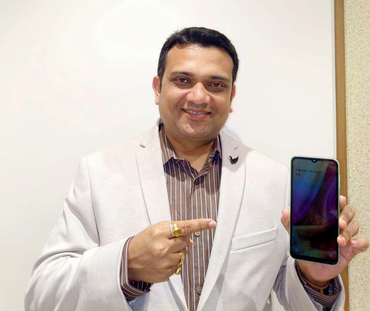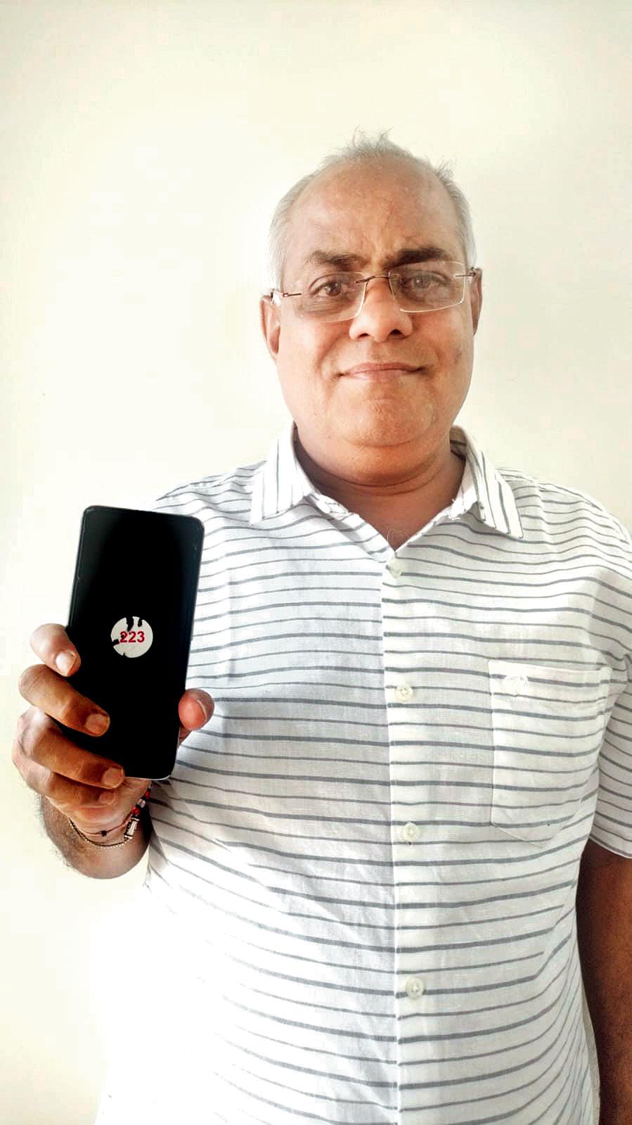 ગૌરાંગ શાહ પાછા મળેલા મોબાઇલ સાથે.