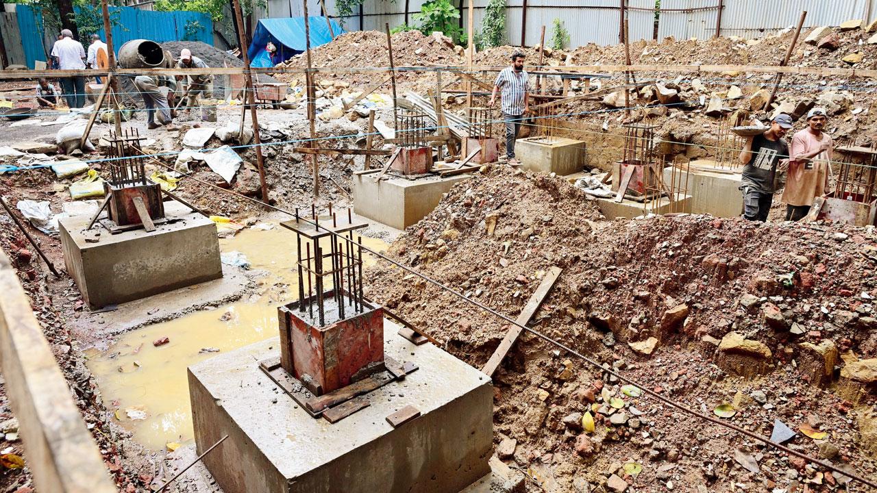 કાંદિવલી-વેસ્ટના મથુરાદાસ રોડ પર લક્ષ્મી નિવાસના ભાડૂતોના ખર્ચે બંધાઈ રહેલી ટ્રાન્ઝિટ કૅમ્પની રૂમો. તસવીર : નિમેશ દવે