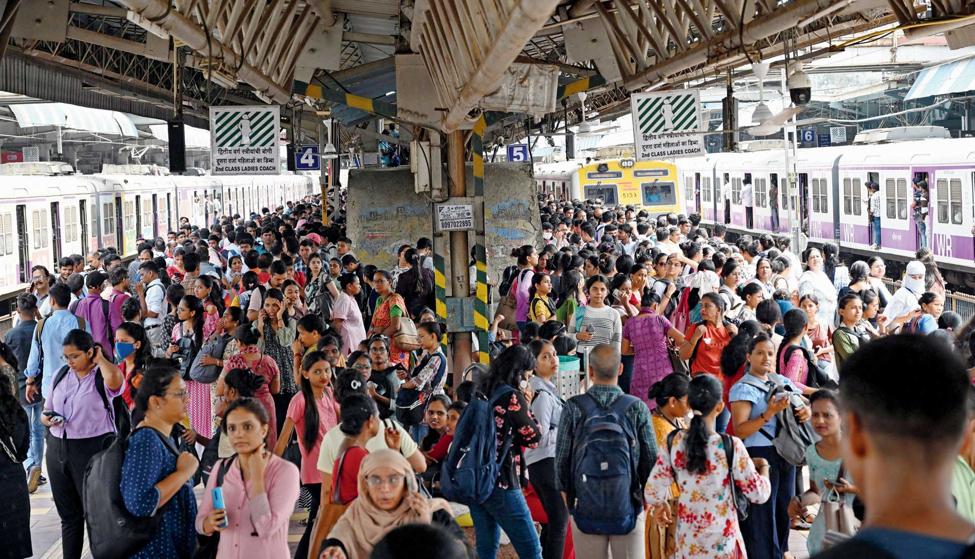 ટ્રેનો સમયસર દોડી ન રહી હોવાથી બોરીવલી સ્ટેશને પર ગઈ કાલે સવારે સખત ભીડ થઈ ગઈ હતી અને લોકો ટ્રેન આવવાની રાહ જોઈ રહ્યા હતા. (સતેજ શિંદે)