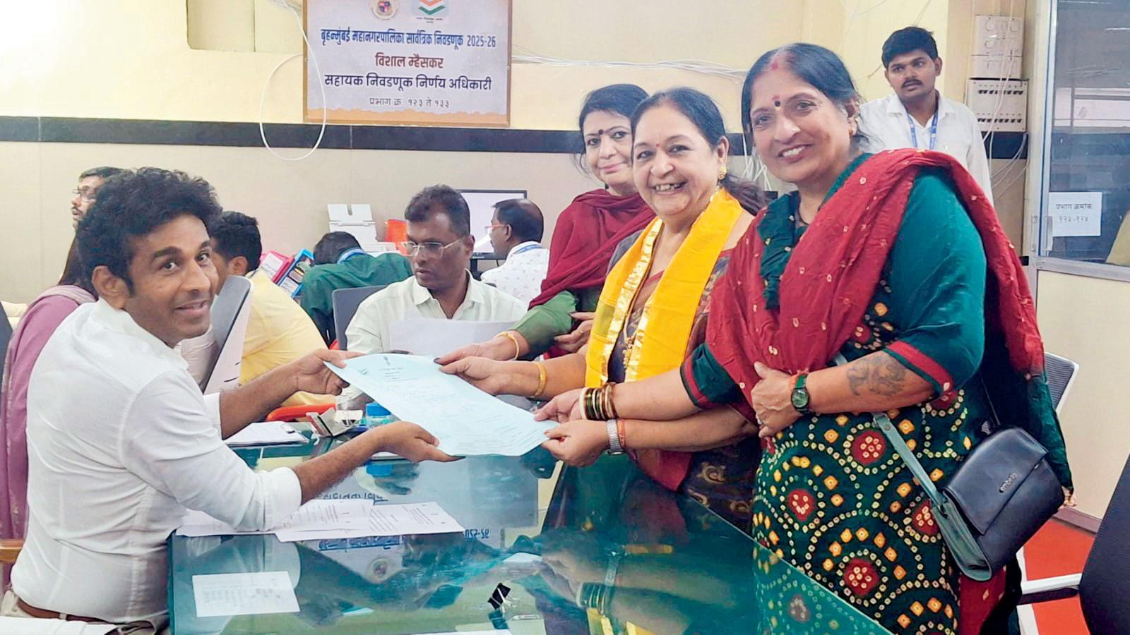 ગઈ કાલે ચૂંટણી અધિકારીને ફૉર્મ આપતાં નેહલ શાહ.