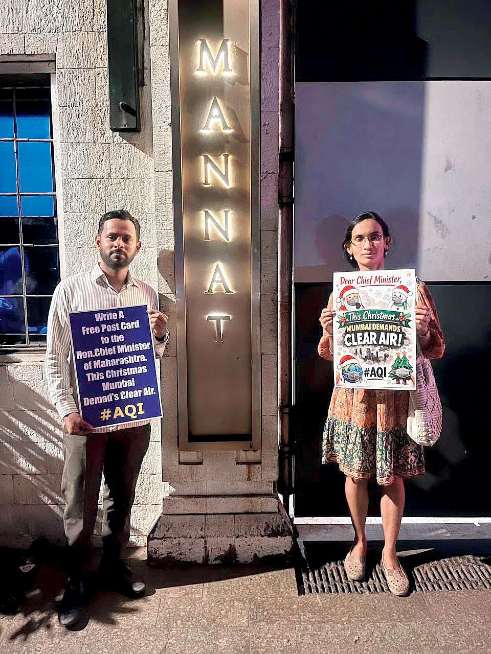 બાંદરા-વેસ્ટમાં બૅન્ડસ્ટૅન્ડ પર આવેલા શાહરુખ ખાનના બંગલા મન્નતની બહાર ગઈ કાલે અલગ જ નઝારો જોવા મળ્યો હતો. મુંબઈ શહેરની બગડતી હવા અને કથળતા ઍર-ક્વૉલિટી ઇન્ડેક્સ (AQI)ના મુદ્દા તરફ લોકોનું ધ્યાન ખેંચવા કેટલાક ઍક્ટિવિસ્ટ મન્નતની બહાર પ્લેકાર્ડ લઈને ઊભા રહ્યા હતા. અહીં તેમણે શાંતિપૂર્ણ રીતે લોકોને તેમનો સંદેશ આપ્યો હતો કે ‘મુંબઈ જ્યારે ક્રિસમસનું સેલિબ્રેશન કરી રહ્યું છે ત્યારે આપણું શહેર શ્વાસ લેવા માટે પણ સંઘર્ષ કરી રહ્યું છે. સ્વચ્છ હવા આપણો અધિકાર છે અને એ માટે સરકારે પગલાં ભરવાં જોઈએ.’ ઍક્ટિવિસ્ટ્સ દ્વારા મન્નતને લોકોનું ધ્યાન ખેંચવા માટે સિમ્બૉલિક પ્લેસ તરીકે પસંદ કરવામાં આવી હતી.