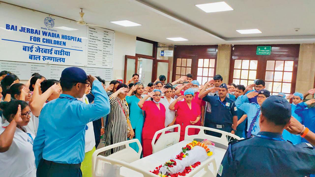 અચાનક વૉમિટિંગ અને ચાર-પાંચ દિવસની સારવાર બાદ મગજમાં પાણી ભરાવાનું નિદાન થયું અને ચેમ્બુરમાં રહેતા અવિનાશ નાગરાણીની પાંચ વર્ષ અને અગિયાર મહિનાની દીકરી દૃષ્ટિને બ્રેઇન ડેડ જાહેર કરવામાં આવી. દેખીતી રીતે પરિવાર પર આ આભ ફાટવા જેવી બાબત હતી. એ પછીયે ડૉક્ટરો અને નજીકના મિત્રોની સમજાવટ પછી દીકરી અનેક માટે નવજીવનનું કારણ બને એવું ઉમદા પગલું આ માતા-પિતાએ લીધું છે. તેમણે દૃષ્ટિના હાર્ટ, આંખો અને કિડનીનું દાન આપ્યું. આ અંગદાનથી ત્રણ બાળકોને નવું જીવન મળશે. આ પગલા બદલ ગઈ કાલે વાડિયા હૉસ્પિટલના સ્ટાફે સૅલ્યુટ અને પૂરા સત્કાર સાથે દૃષ્ટિને અંતિમ વિદાય આપી હતી.