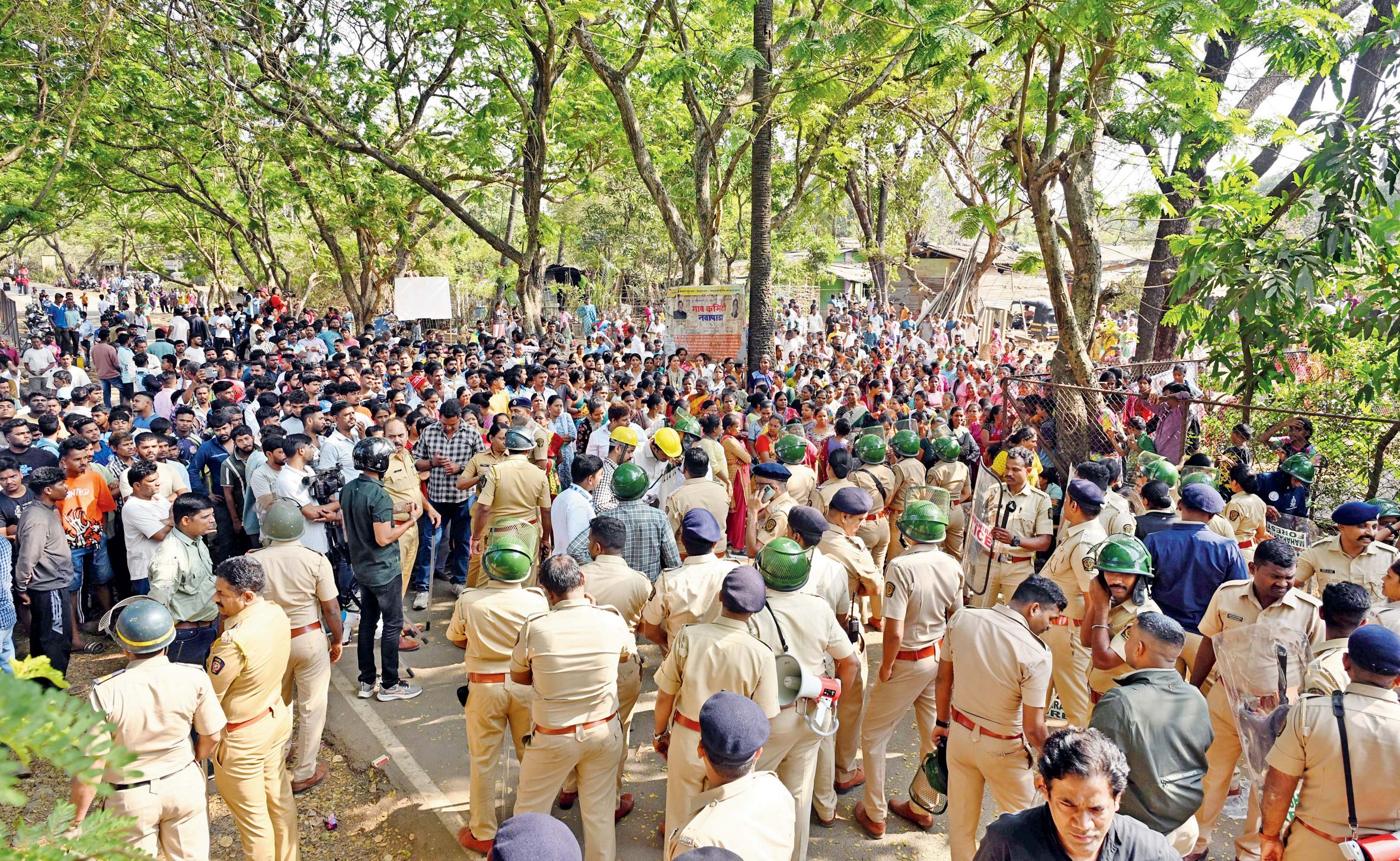 ડિમોલિશનનો મોટા પાયે વિરોધ થતો હોવાથી મોટી સંખ્યામાં પોલીસ-બંદોબસ્ત ગોઠવાયો હતો. એક તબક્કે આંદોલનકારીઓ અને પોલીસ વચ્ચે વિખવાદ થતાં મામલો ગંભીર બન્યો હતો. તસવીરો : સતેજ શિંદે