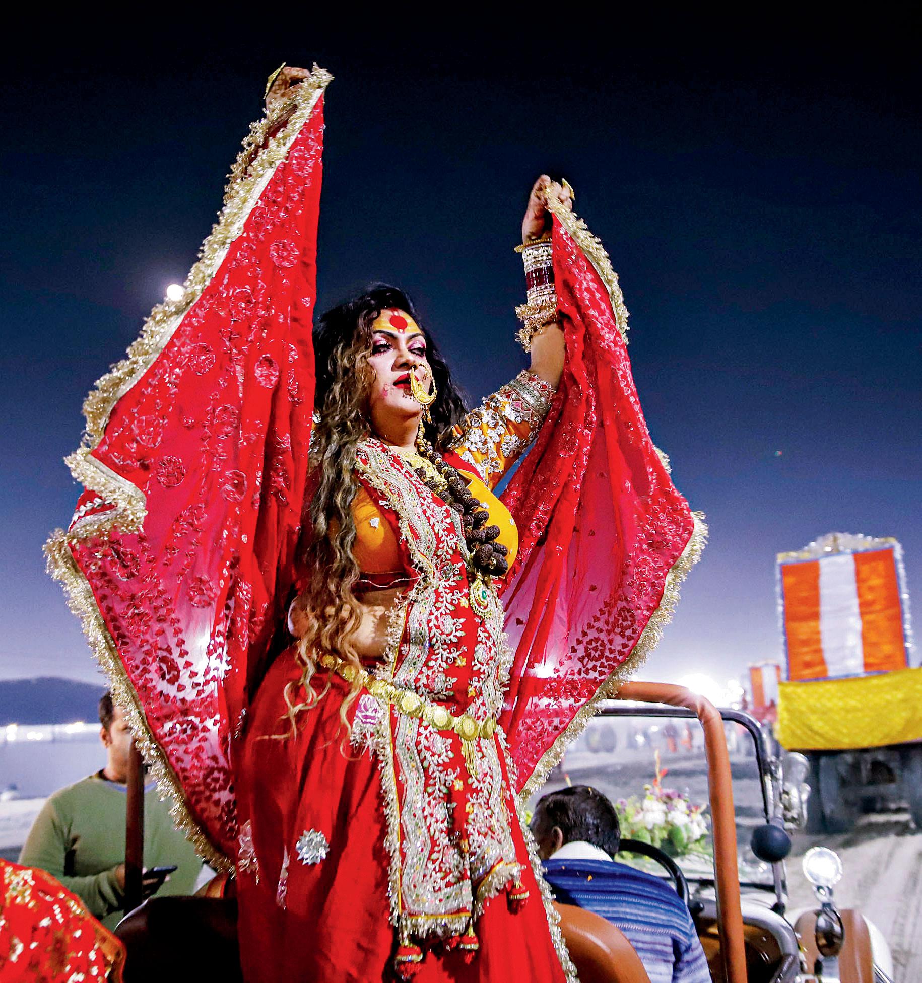 ઉત્તર પ્રદેશના પ્રયાગરાજમાં ૧૩ જાન્યુઆરીથી મહાકુંભ શરૂ થઈ રહ્યો છે ત્યારે ત્યાં રોજેરોજ સરઘસો નીકળી રહ્યાં છે. ગઈ કાલે કિન્નર અખાડાના સરઘસ દરમ્યાન આ દૃશ્ય જોવા મળ્યું હતું.