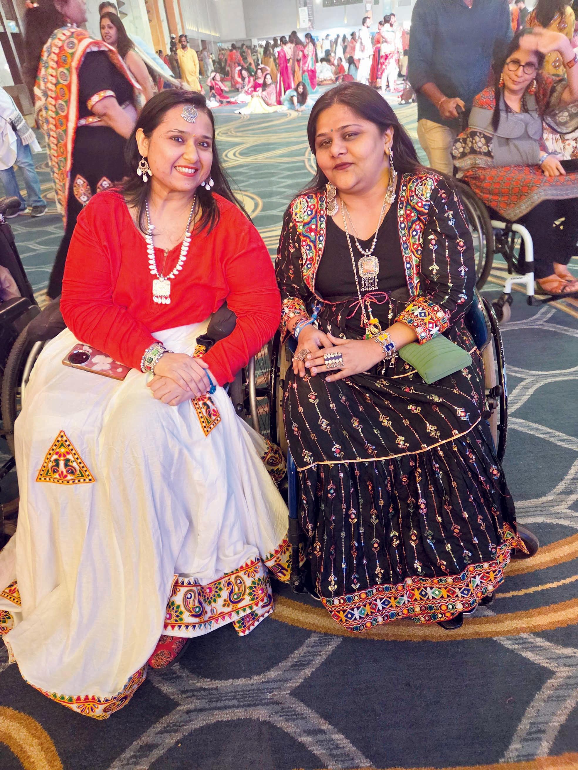 ઘાટકોપરની બિઝનેસવુમન શ્વેતા મહેતાએ આ બાબતની માહિતી આપતાં ‘મિડ-ડે’ને કહ્યું હતું કે ‘અમારા બધાની ઓળખાણ એક બિનસરકારી સંસ્થા નીના ફાઉન્ડેશનમાં થઈ હતી. ત્યારથી અમે બહુ જ નિકટ આવી ગયા છીએ. બે વર્ષ પહેલાં અમે પાંચ જણ ગરબા રમવા ગયા હતા. જોકે આ નવરાત્રોત્સવમાં અમે બધાએ એકસાથે ગરબા રમવા જવાનો નિર્ણય કરીને વ્હીલચૅર પર બેસીને ગરબા રમવા ગયા હતા. મારી સાથે માટુંગાથી હીરલ શાહ અને કેતના મહેતા, વિલે પાર્લેથી સુનીતા સંચેતી, માહિમથી નીનુ કેલવાની, મુલુંડથી બીજોલી શાહ, દાદરથી હર્ષદ શિંદે, કાંદિવલીથી નિકુંજ ભુતા અને હાર્દિક ધોળકિયા, ખારથી મધુ, ગ્રાન્ટ રોડથી રિતુ તિવારી, નવી મુંબઈના નેરુલથી નેહલ ઠક્કર અને અનુપ ચંદ્રન તથા ખારઘરથી અલ્પા આ ઇવેન્ટને માણવા આવ્યાં હતાં. અમે નવરાત્રોત્સવને અનુરૂપ વસ્ત્રપરિધાન કરીને ગયાં હતાં. અમે ખૂબ જ સુંદર લાગતાં હતાં. વ્હીલચૅર એ એક ઍક્સેસરી હતી. આ બધાં દિવ્યાંગો અલગ-અલગ ફીલ્ડ સાથે સંકળાયેલાં છે. તેઓ દિવ્યાંગ હોવા છતાં ખૂબ જ ઉત્સાહી છે. અમે સાથે ક્રૂઝ પર ફરવા ગયા છીએ અને નવી-નવી જગ્યાઓ શોધતા રહીએ છીએ. બધા શિક્ષિત છે. ઘણાનો પોતાનો વ્યવસાય છે અને થોડા લોકો નોકરી કરે છે. બધા આર્થિક રીતે ખૂબ જ સ્વતંત્ર છે. તેમની પાસે પોતાની કાર છે. એમાંના ઘણા પોતાની કાર ચલાવે છે તેથી મુસાફરી કરવી ખૂબ જ સરળ બને છે.’