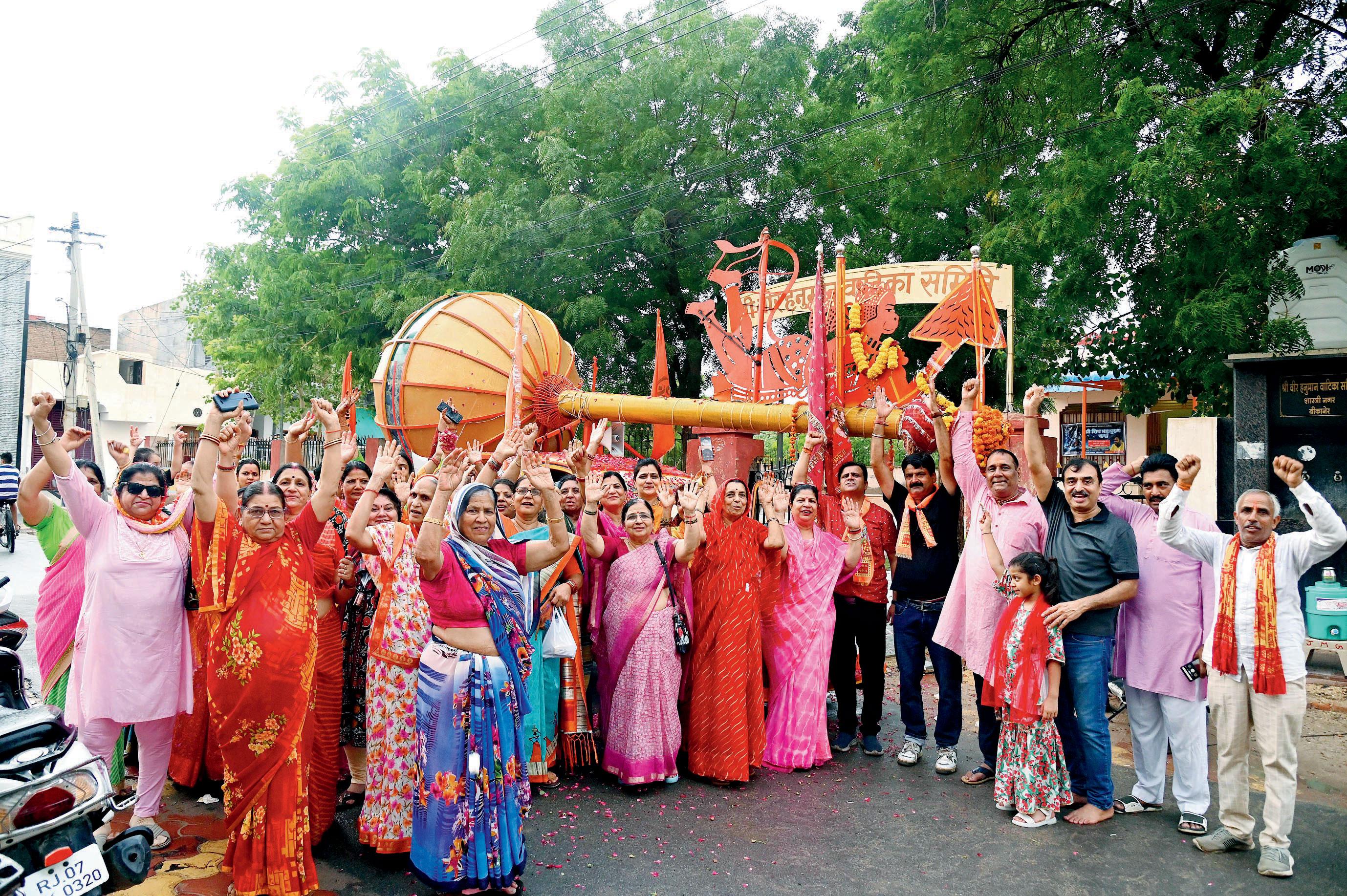 રાજસ્થાનના બિકાનેરમાં બની રહેલી હનુમાનદાદાની ૮૪ ફુટ ઊંચી મૂર્તિ માટે ભક્તોએ અષ્ટધાતુની બનેલી ૨૧ ફુટ ઊંચી ગદા ભેટ આપી છે.