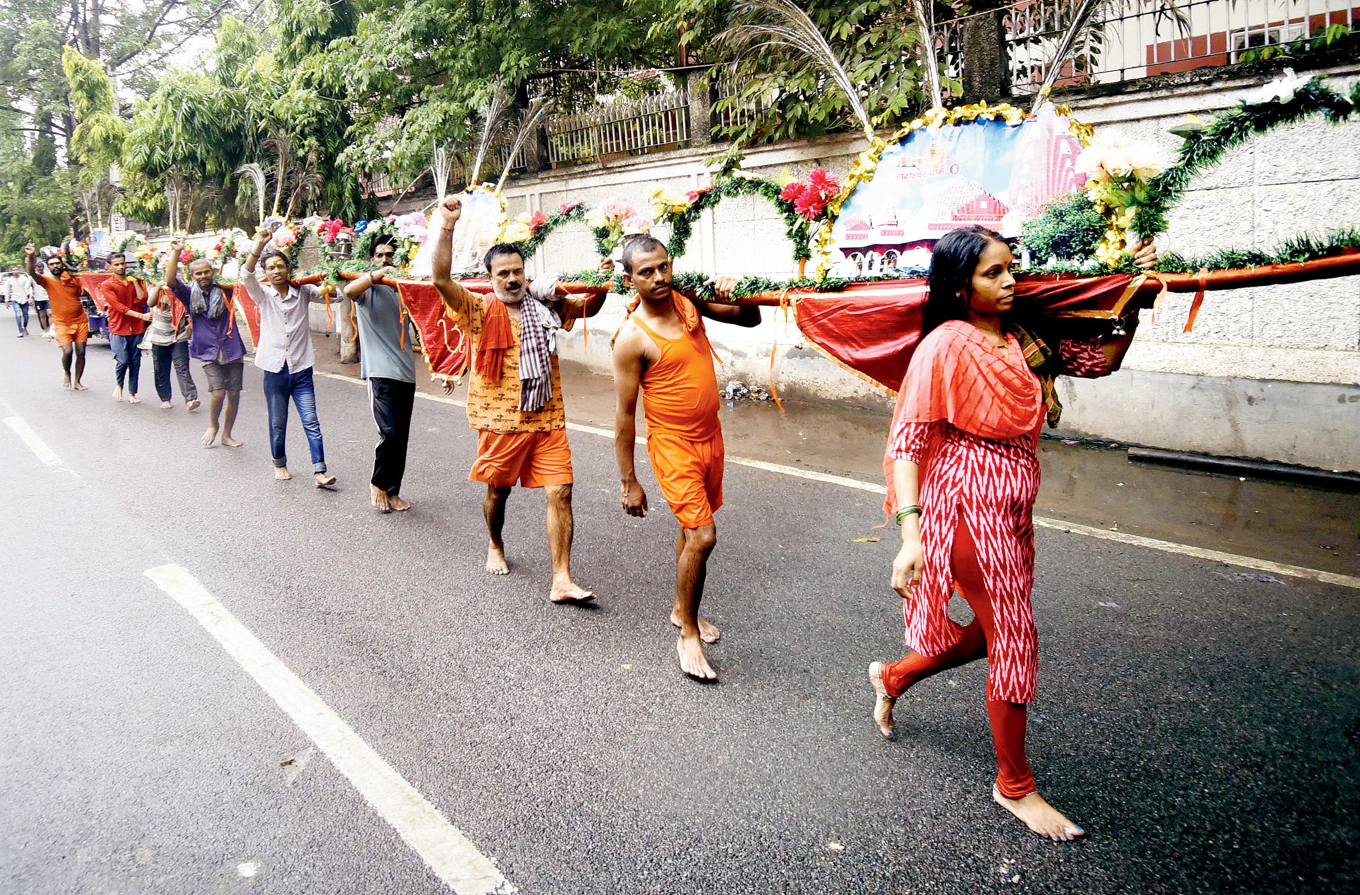 ગઈ કાલે બિહારના પાટનગર પટનામાં કાવડયાત્રીઓ ૧૦૮ ફુટ લાંબું કાવડ લઈ જતા જોવા મળ્યા હતા. બીજી તરફ મેરઠમાં કાવડયાત્રીઓએ તેમના શિરે ક્યુટ મહાદેવને બેસાડ્યા હતા.