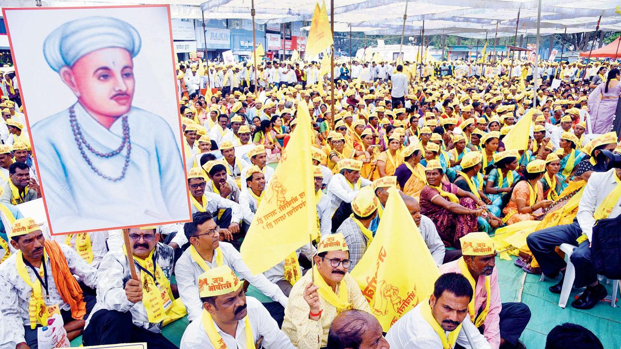 મહારાષ્ટ્રભરમાંથી ભેગા થયેલા OBCના સેંકડો આગેવાનોએ ૩ કિલોમીટરની પદયાત્રા કરીને કુણબી સર્ટિફિકેટનું GR રદ કરવાની માગણી તીવ્ર કરી