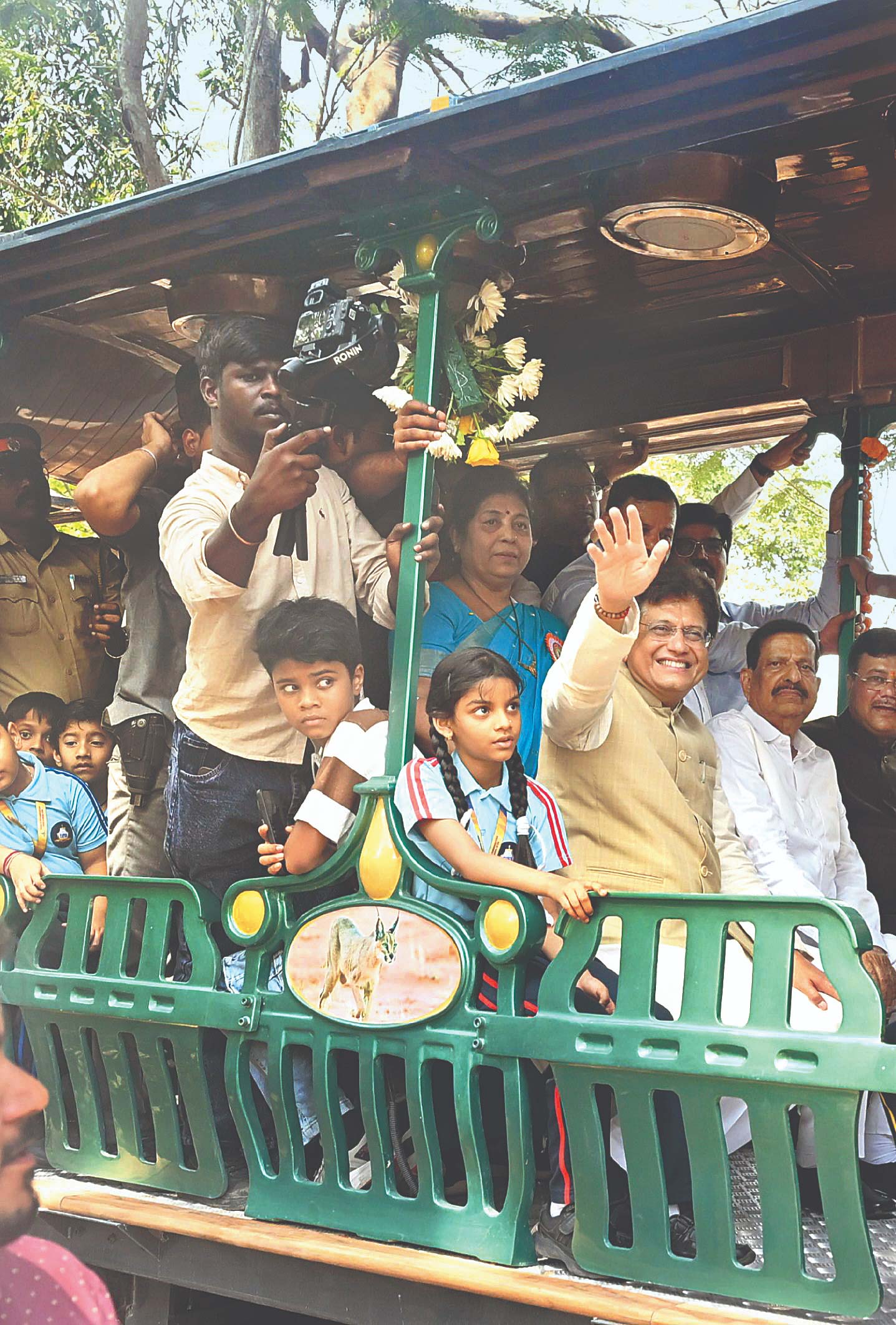 પીયૂષ ગોયલ અને રાજ્યના ફૉરેસ્ટ મિનિસ્ટર ગણેશ નાઈકે બાળકો સાથે વનરાણીમાં પ્રવાસ કરીને આનંદ ઉઠાવ્યો હતો.