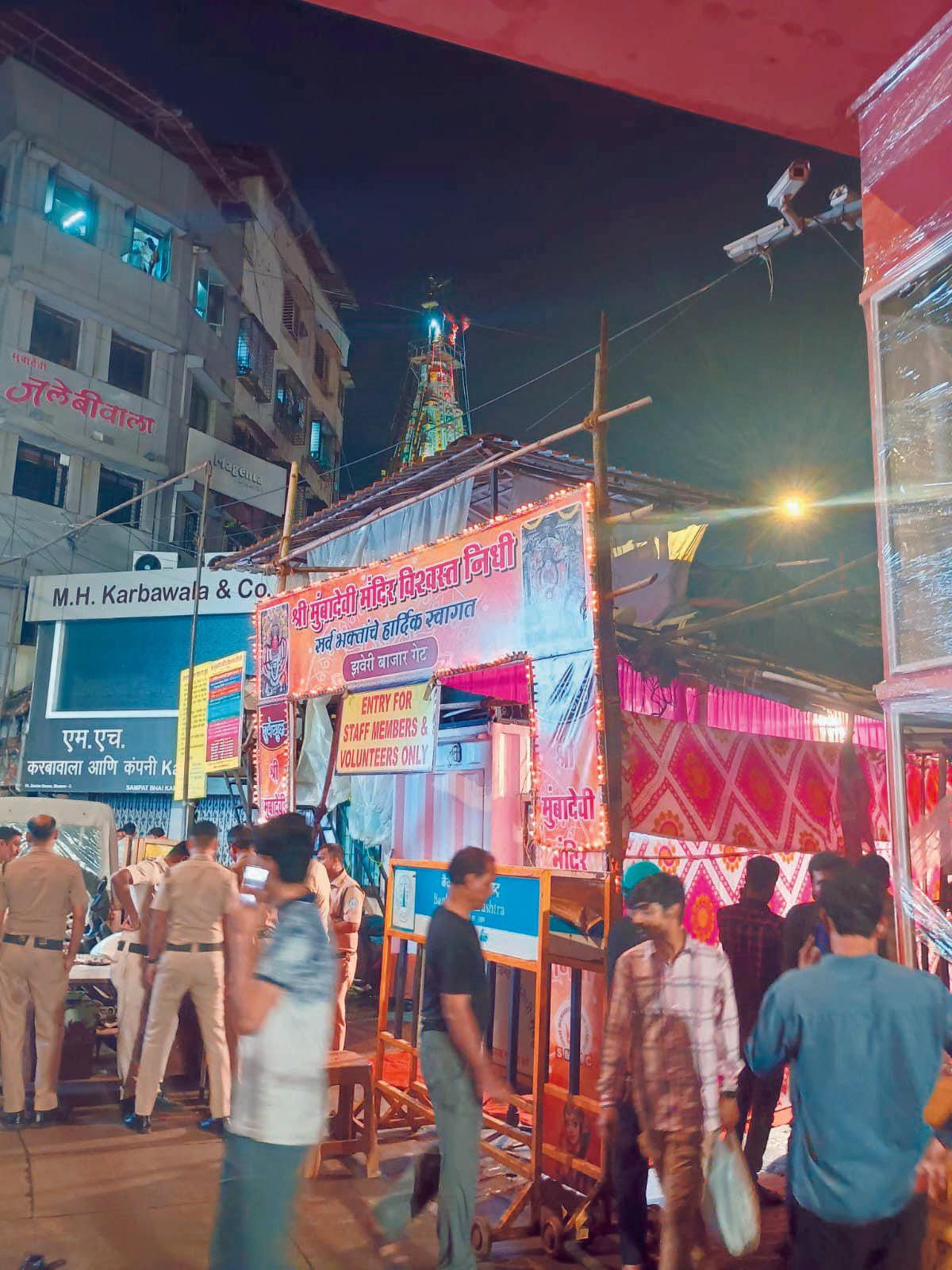 મુંબાદેવી મંદિરની બહાર ગઈ કાલે ભારે પોલીસ-બંદોબસ્ત જોવા મળ્યો હતો.
