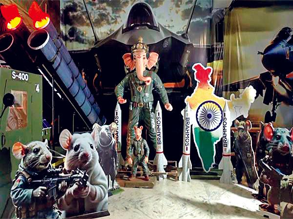 ૨૭ ઑગસ્ટે ગણેશ ચતુર્થી નિમિત્તે લાખો પંડાલોમાં અનોખી થીમ સાથે વિઘ્નહર્તાની મૂર્તિઓની સ્થાપના કરવામાં આવશે, પણ હૈદરાબાદમાં ઉપ્પુગુડાના શ્રી મલ્લિકાર્જુનનગર યુવા કલ્યાણ સંગઠને આ ઉત્સવ માટે ઑપરેશન સિંદૂર થીમ આધારિત ગણેશમૂર્તિ બનાવી છે. સ્થાનિક કલાકારો દ્વારા આશરે ૬ લાખ રૂપિયાના ખર્ચે બનાવવામાં આવેલી આ મૂર્તિમાં બ્રહ્મોસ મિસાઇલો, રફાલ જેટ્સ, S-૪૦૦ની પ્રતિકૃતિ અને આર્મી મૉડલ થીમ છે જે ભક્તિ અને દેશભક્તિ શ્રદ્ધાંજલિનું મિશ્રણ કરે છે. એમાં ભગવાનના વાહન મૂષકમામાના હાથમાં રાઇફલો દર્શાવવામાં આવી છે.
