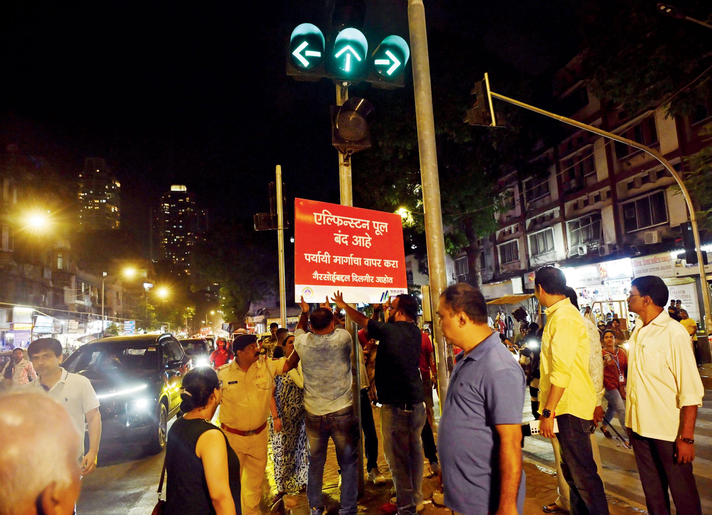 અહીંથી હટીશું પણ નહીં અને બ્રિજ પણ બંધ નહીં થવા દઈએ એમ કહીને સ્થાનિકોએ એલ્ફિન્સ્ટન બ્રિજ બંધ હોવાની સૂચના આપતું પાટિયું ગઈ કાલે રાત્રે હટાવી દીધું હતું. મુંબઈ ટ્રાફિક ડિપાર્ટમેન્ટે ૧૦ સપ્ટેમ્બરથી પરેલ અને એલ્ફિન્સ્ટનને જોડતા એલ્ફિન્સ્ટન બ્રિજને બંધ કરવાની સૂચના આપી હતી. સ્થાનિક રહેવાસીઓએ તેમના રીલોકેશન માટે પ્રશાસન તરફથી કોઈ સ્પષ્ટતા ન મળે ત્યાં સુધી બ્રિજ બંધ કરવામાં નહીં આવે એમ કહ્યું હતું. આ બ્રિજના રીડેવલપમેન્ટને કારણે પરેલનાં ૧૯ બિલ્ડિંગને અસર થશે. એથી રહીશોએ બુધવારે રાતે વિરોધ-પ્રદર્શન કર્યું હતું. હાલમાં મુંબઈ મેટ્રોપૉલિટન રીજન ડેવલપમેન્ટ ઑથોરિટી (MMRDA)એ પુલના રીડેવલપમેન્ટ માટે નવી તારીખ ન આવે ત્યાં સુધી કાર્યવાહી ન કરવાની સૂચના આપી છે.