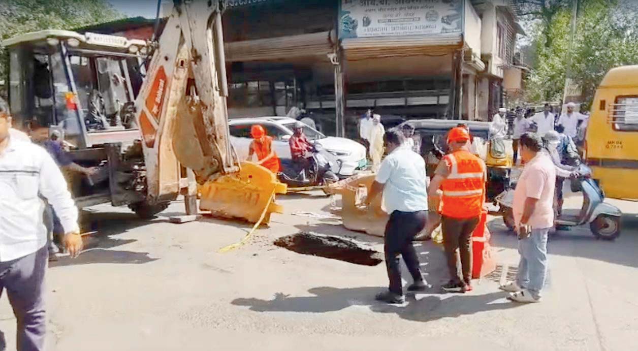 થાણે-વેસ્ટના માજીવાડાના ગોલ્ડન ડાઇઝ નાકા નજીક બીજી માર્ચે બપોરે ૨.૩૫ વાગ્યે પરમ હૉસ્પિટલ સામે એક ખાડો પડી ગયો હતો જેમાં ટ્રક ફસાઈ ગઈ હતી. થાણે મ્યુનિસિપલ કૉર્પોરેશન, રીજનલ ડિઝૅસ્ટર મૅનેજમેન્ટ સેલ અને પબ્લિક વર્ક્સ ડિપાર્ટમેન્ટની ઇમર્જન્સી ટીમોએ તાત્કાલિક કાર્યવાહી કરી હતી. કોઈ ઈજાગ્રસ્ત થયાના અહેવાલ નથી. અધિકારીઓએ ટ્રક કાઢીને ખાડાનું સમારકામ કર્યું હતું. દરમ્યાન મોટરિસ્ટોને ઑલ્ટરનેટિવ માર્ગો અપનાવવાની સલાહ આપવામાં આવી હતી.