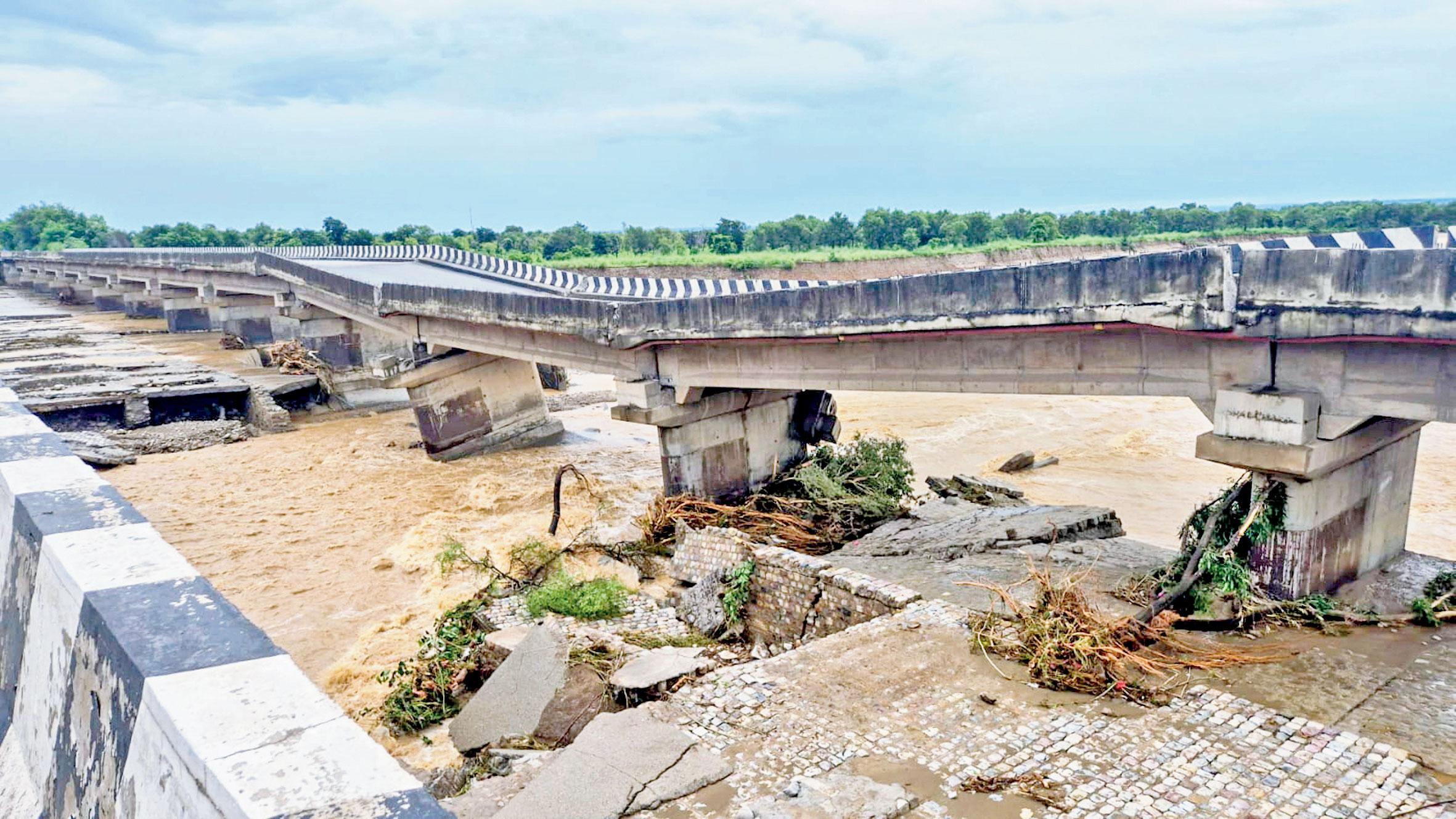 જમ્મુ-કાશ્મીરમાં અનરાધાર વરસાદને લીધે હજી અનેક વિસ્તારોમાં જનજીવન ભારે પ્રભાવિત છે. કઠુઆ જિલ્લામાં જમ્મુ-પઠાણકોટ નૅશનલ હાઇવે પર આવેલા બ્રિજનો એક આખો ભાગ તૂટીને બેસી ગયો હતો. કઠુઆ જિલ્લામાં પડેલા પુષ્કળ વરસાદને લીધે સહાર ખડ્ડુ નદીમાં એકસાથે ભારે માત્રામાં પાણી વહી આવ્યું હતું. બેકાબૂ વહેણને લીધે બ્રિજ પણ તૂટી ગયો હતો.