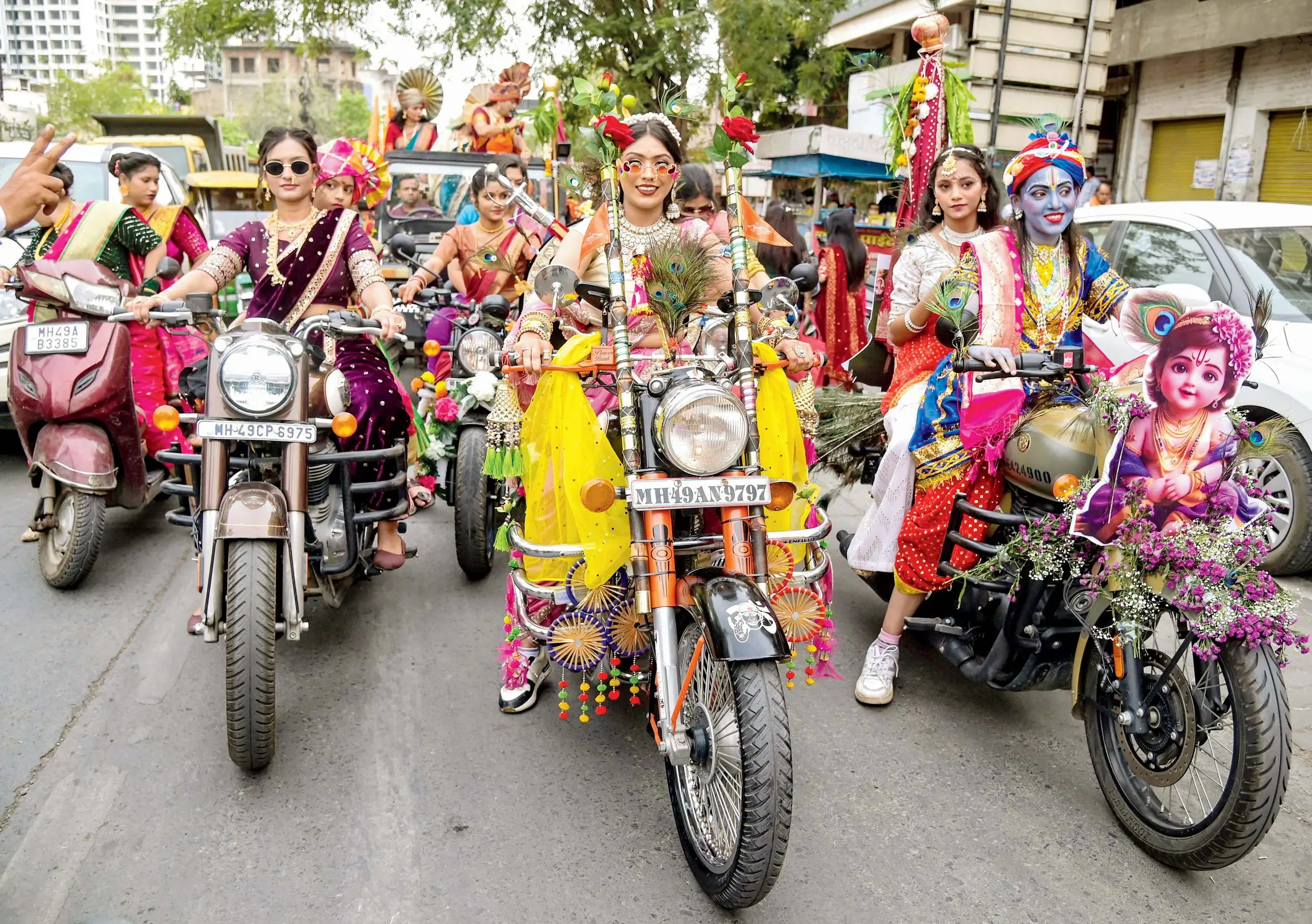 ગુઢીપાડવાની પૂર્વસંધ્યાએ નાગપુરમાં મહિલાઓ સુંદર અને પારંપરિક પશાકમાં સજ્જ થઈને બાઇક-રૅલીમાં જોડાઈ હતી. એ દરમ્યાન બાઇક પર સવારી કરતી રાધા-કૃષ્ણની જોડીએ લોકોમાં ખાસ્સું આકર્ષણ જમાવ્યું હતું. આ રીતે મરાઠી ટ્રેડિશનલ ડ્રેસમાં સજ્જ મહિલાઓની બાઇક-રૅલી, લેઝીમ અને લાઠીકાઠીનાં કરતબ સાથે ઢોલ-તાશા પથક સહિત મહારાષ્ટ્રની સંસ્કૃતિની ઝાંખી કરાવતી શોભાયાત્રા આજે મુંબઈના ગિરગામ, શિવાજી પાર્ક તેમ જ થાણે-ડોમ્બિવલીમાં જોવા મળશે.
