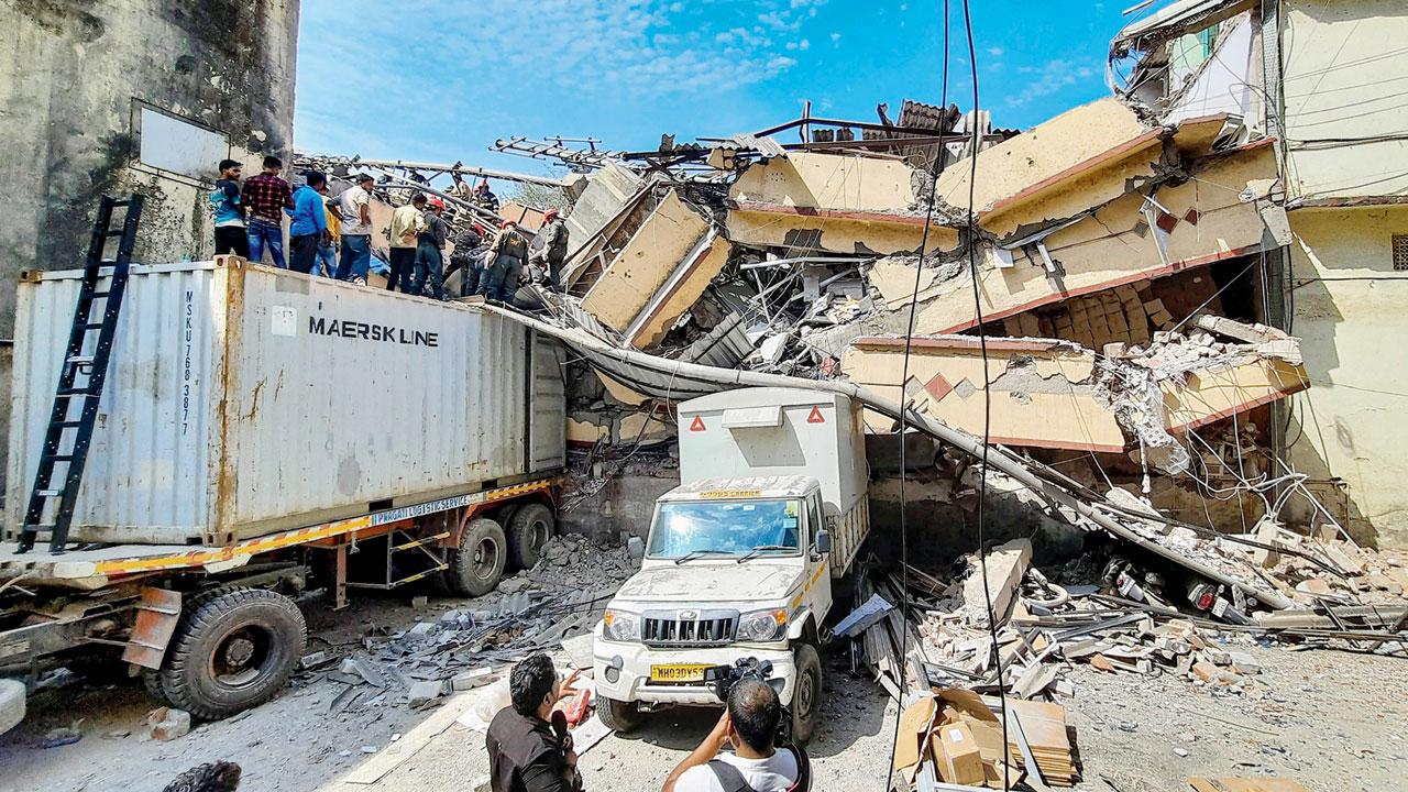ત્રણ વ્યક્તિનાં મૃત્યુ અને ૧૧ જણને બચાવી લેવાયા : હજી વધુ લોકો ફસાયા હોવાની શક્યતા : ભિવંડી ફાયર બ્રિગેડ અને થાણે ડિઝૅસ્ટર સાથે એનડીઆરએફની ટીમ પણ બચાવકાર્ય માટે બોલાવાઈ