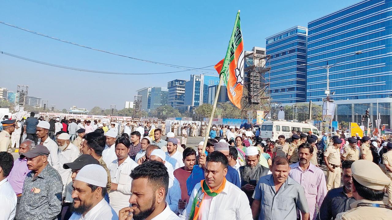 મુંબઈના વિકાસને લગતા પ્રોજેક્ટ્સનું ઉદઘાટન કરવા ગઈ કાલે બાંદરા-કુર્લા કૉમ્પ્લેક્સના એમએમઆરડીએ ગ્રાઉન્ડમાં આવનારા વડા પ્રધાન નરેન્દ્ર મોદીને સાંભળવા અને જોવા મોટી સંખ્યામાં મુંબઈગરા આવી પહોંચ્યા હતા. બપોરથી જ લોકો આવવાના શરૂ થઈ ગયા હતા. નરેન્દ્ર મોદી અને બીજેપીના અનેક સમર્થકો ગળામાં બીજેપીનો ખેસ અને હાથમાં બીજેપીનો ઝંડો લઈને આવી પહોંચ્યા હતા. જોકે મેદાનની અંદર ઝંડો લઈ જવા પર મનાઈ હતી. જોવા જેવી વાત એ હતી કે બહુ મોટી સંખ્યામાં લોકો આવ્યા હોવા છતાં કોઈ જાતની અંધાધૂંધી નહોતી. પોલીસ-બંદોબસ્ત તો હતો જ, પણ બીજેપીના કાર્યકરોની અનેક ટીમ મેદાનમાં કાર્યરત હતી.