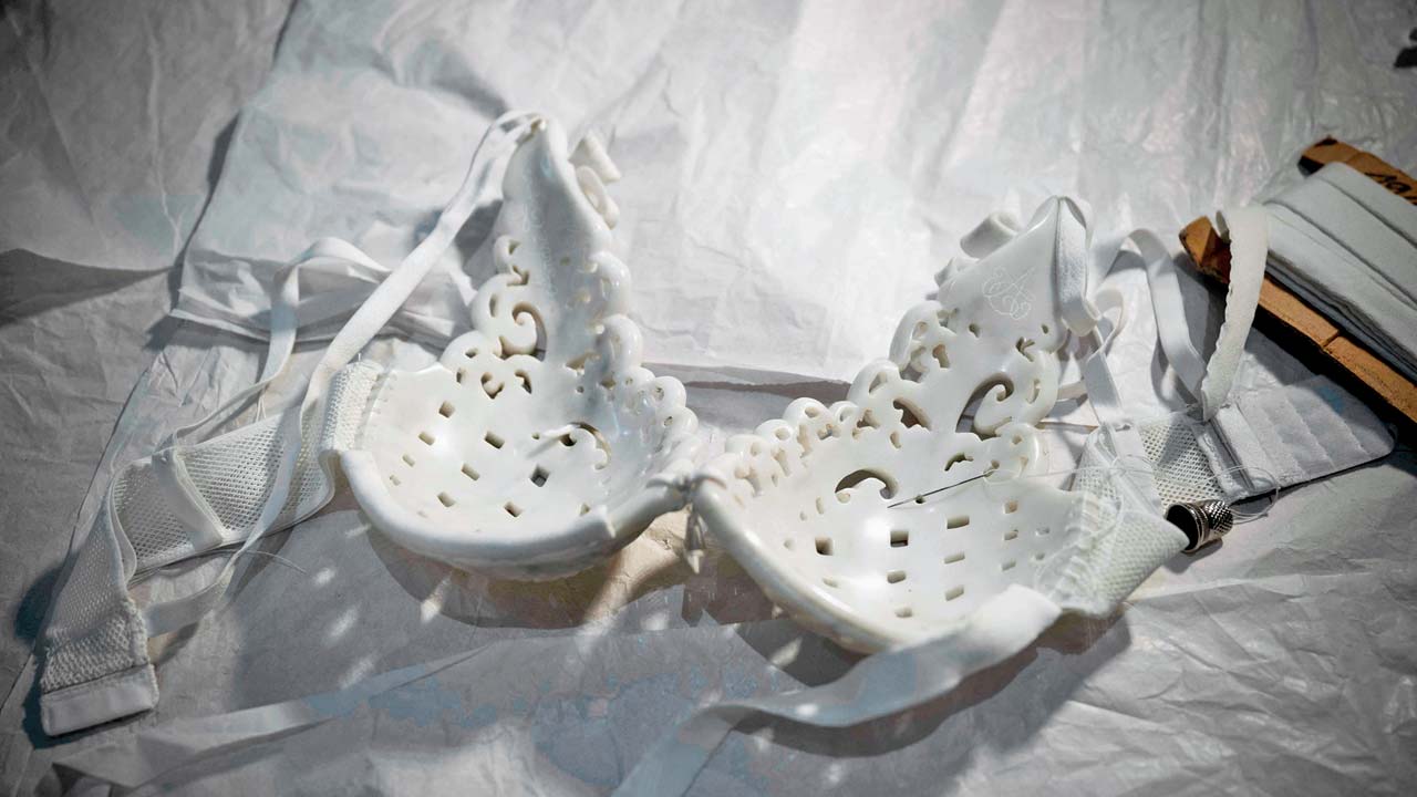 ફૅશનનું કાશી ગણાતા પૅરિસમાં આએ દિન અળવીતરાં કૉસ્ચ્યુમ્સ જોવા મળે છે. તાજેતરમાં સ્પ્રિંગ/સમર ૨૦૨૬ કલેક્શનમાં જુલિયન ફૉર્ની નામના ડિઝાઇનરની પૅરિસની વર્કશૉપમાં એક શિલ્પ રજૂ થયું છે. સફેદ માર્બલમાંથી બનાવેલી બ્રેસિયરનું શિલ્પ આ વખતે મૉડલ્સ પહેરીને રજૂ કરશે. લાગે છે હવે માણસ ફરીથી પાષાણયુગ તરફ જઈ રહ્યો છે.