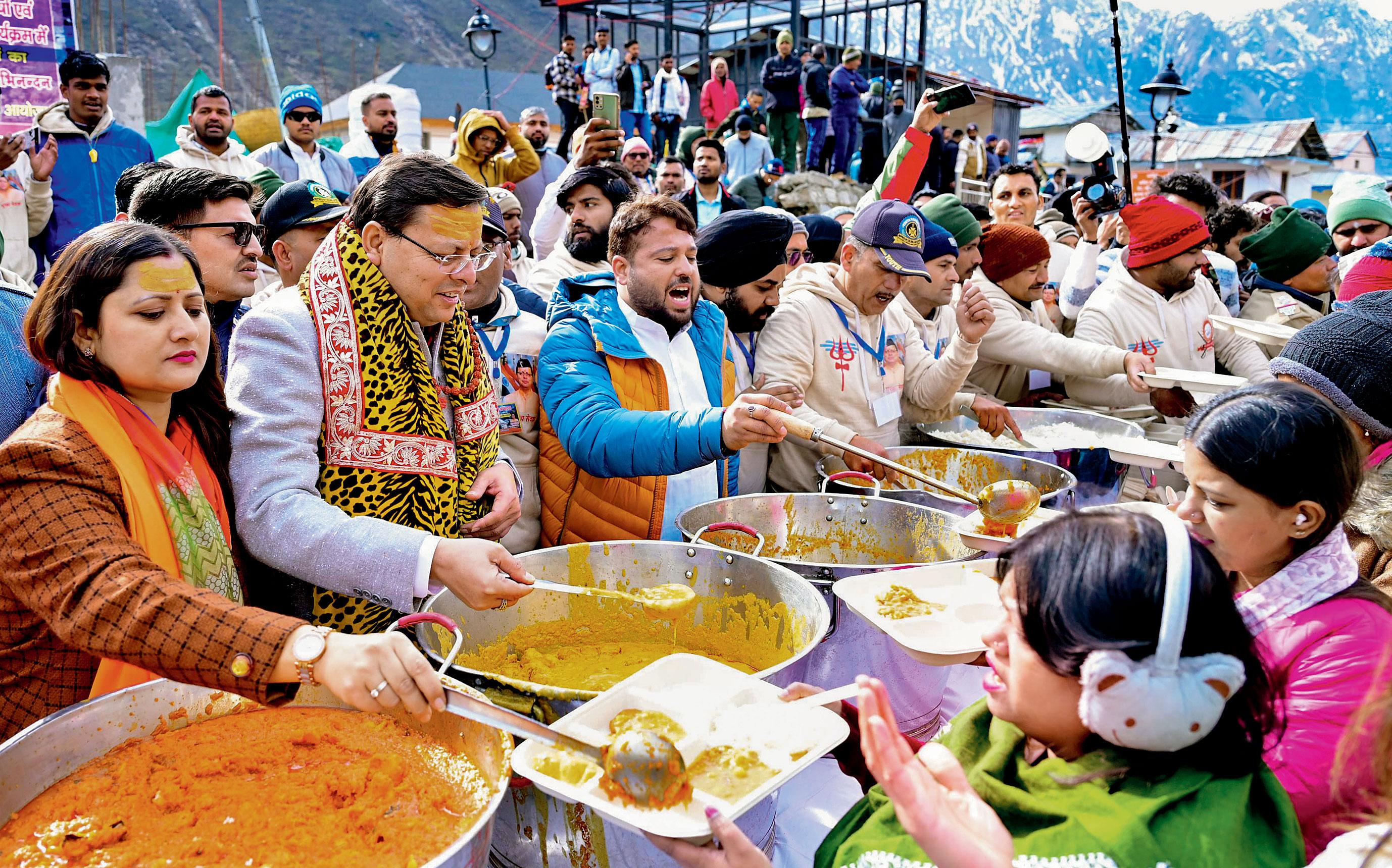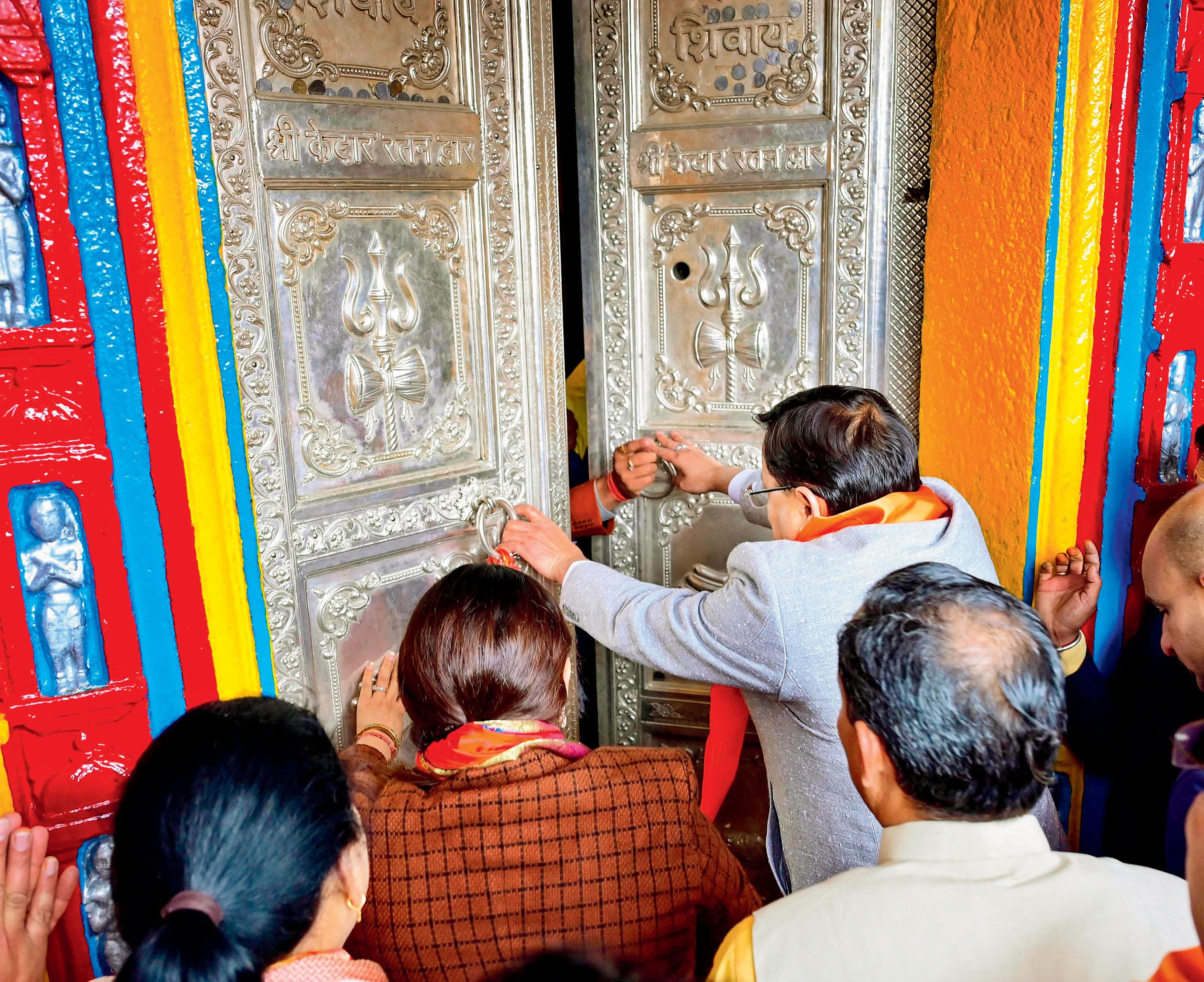 ગઈ કાલે કેેદરનાથ ધામનાં કપાટ ખૂલ્યાં એ પ્રસંગે ઉત્તરાખંડના મુખ્ય પ્રધાન પુષ્કર સિંહ ધામી પત્ની ગીતા સાથે. બાબા કેદારનાથના દર્શન કર્યા પછી તેમણે ભંડારામાં ભોજનવિતરણ પણ કર્યું હતું. કેદારનાથ ધામમાં દર્શન માટે ગઈ કાલે ભક્તો ઉપરાંત સાધુ સંતો પણ ઊમટ્યા હતા.