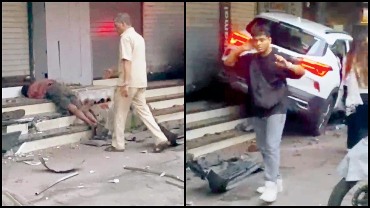 ઘાટકોપર પોલીસ સ્ટેશનના સિનિયર ઇન્સ્પેક્ટર સતીશ જાધવે ‘મિડ-ડે’કહ્યું હતું કે ‘શનિવારે સવારે ૬.૪૫ વાગ્યે પોલીસ કન્ટ્રોલમાં ઘાટકોપરના LBS માર્ગ પર ઍક્સિડન્ટ થયો હોવાનો કૉલ આવ્યો હતો. તાત્કાલિક અમારી ટીમ ઘટનાસ્થળે પહોંચી ત્યારે ત્યાં ઘણા લોકો ભેગા થયેલા જોવા મળ્યા હતા. ત્યાં ગુજરાતમાં રજિસ્ટર્ડ કાર પંજાબ નૅશનલ બૅન્કની બાજુની દુકાનનાં પગથિયાં સાથે અથડાઈ હોવાનું જોવા મળ્યું હતું. એ કારે પગથિયાં પર સૂતેલી એક વ્યક્તિને અડફેટે લીધી હતી. એ ઘાયલ યુવકને તાત્કાલિક રાજાવાડી હૉસ્પિટલમાં ખસેડવામાં આવ્યો હતો. એ વખતે કાર નજીક ઊભેલી બે યુવતીઓને તાબામાં લઈ પોલીસ-સ્ટેશને લાવવામાં આવી હતી. તેમનું પછીથી મેડિકલ ચેકઅપ કરવામાં આવ્યું હતું. ત્યાં ભેગા થયેલા લોકોએ અમને જણાવ્યું હતું કે અકસ્માત બાદ એક યુવક કારમાંથી નીકળીને રિક્ષામાં બેસીને ચાલ્યો ગયો હતો.’