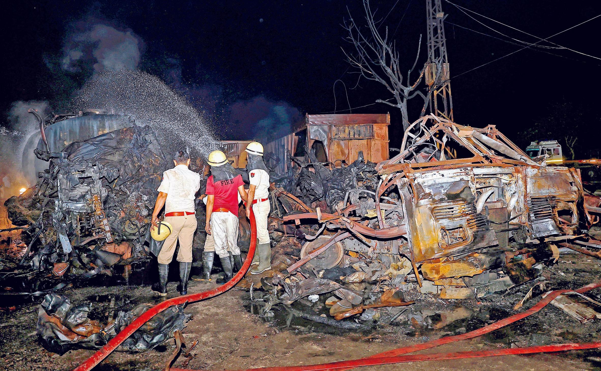 ૨૦૦થી વધુ સિલિન્ડરો લગભગ બે કલાક સુધી બ્લાસ્ટ થઈને હવામાં ફંગોળાયાં હતાં.