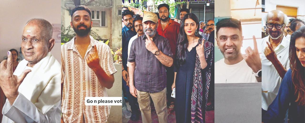 તામિલનાડુમાં અનેક સેલિબ્રિટીઝે પહેલા તબક્કાના મતદાનમાં વોટિંગ કર્યું હતું. સાઉથના ભગવાન ગણાતા દિગ્ગજ ઍક્ટર રજનીકાન્ત તથા દિગ્ગજ ઍક્ટર અને રાજ્યસભાના સંસદસભ્ય કમલ હાસને દીકરી શ્રુતિ હાસન સાથે ચેન્નઈમાં મતદાન કર્યું હતું. મ્યુઝિક કમ્પોઝર ઇલયા રાજા, ક્રિકેટર રવિચંદ્રન અશ્વિન અને વરુણ ચક્રવર્તીએ પણ મતદાન કરીને પોઝ આપ્યો હતો.
