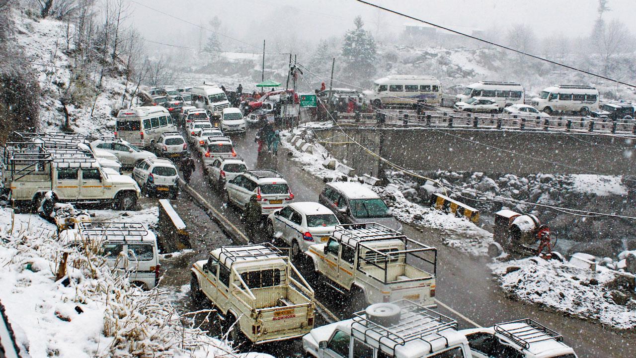 હિમાચલ પ્રદેશના મનાલીમાં સોમવારે ફ્રેશ સ્નોફૉલ થયો એને પગલે ત્યાં અસંખ્ય વાહનો અટવાઈ ગયાં હતાં તથા ટૂરિસ્ટો સોલાંગ અને અટલ ટનલની વચ્ચે કલાકો સુધી ફસાઈ ગયા હતા. સ્થાનિક પ્રશાસનના કહેવા મુજબ અંદાજે ૧૦૦૦ જેટલાં વાહનો ટ્રાફિકમાં ફસાઈ ગયાં હતાં અને એમાંથી ૭૦૦ ટૂરિસ્ટોને સુરિક્ષત સ્થળે લઈ જવાયા હતા.