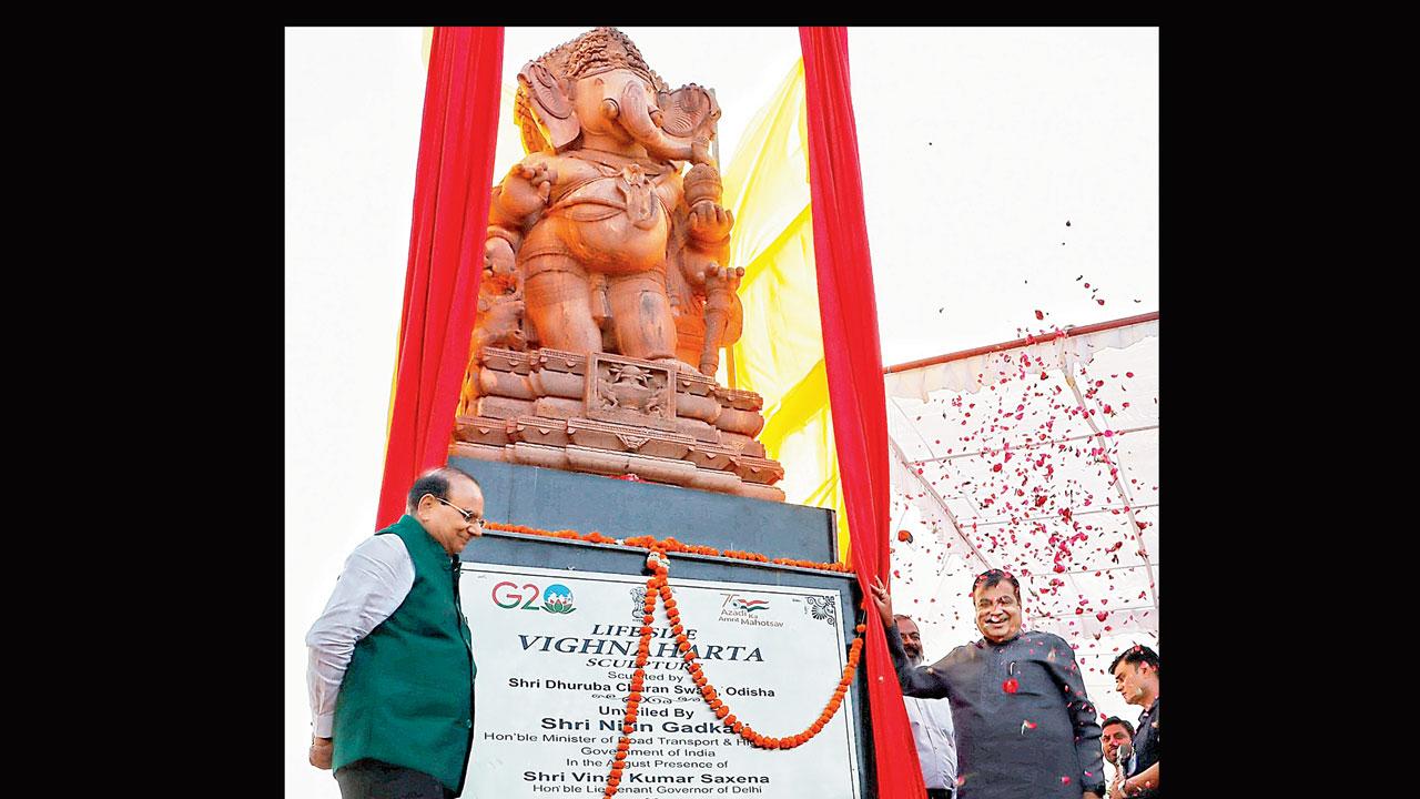 આગામી શુક્રવારથી દિલ્હીમાં G20 સંમેલનની શરૂઆત થઈ રહી છે. જેને જોતાં નવી દિલ્હી ઍરપોર્ટ પરથી પસાર થતા મુસાફરો માટે એક વિશાળ ગણેશની પ્રતિમાનું અનાવરણ ગઈ કાલે યુનિયન મિનિસ્ટર નીતિન ગડકરી દ્વારા કરવામાં આવ્યું છે. G20 સમિટ નિમિત્તે બ્યુટિફિકેશન કાર્યક્રમ અંતર્ગત આ બધું કરવામાં આવી રહ્યું છે
