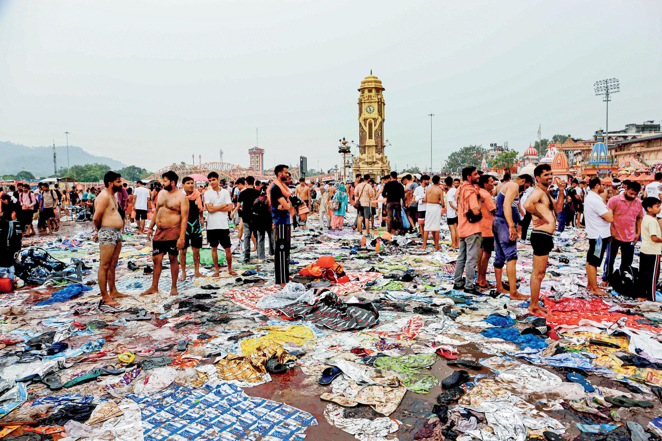 ગઈ કાલે સાવન શિવરાત્રિના અવસરે કાવડયાત્રા સમાપ્ત થઈ હતી અને એ પછી હરિદ્વારમાં હર કી પૌડી પર ઠેર-ઠેર કપડાં અને ચંપલો જોવા મળ્યાં હતાં.