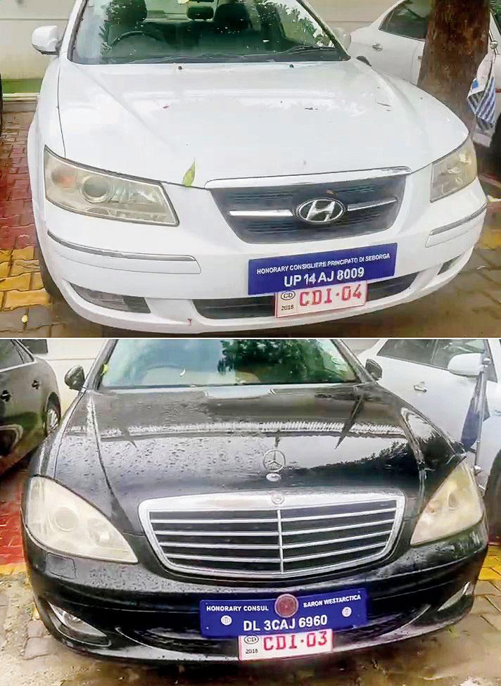ઉત્તર પ્રદેશ પોલીસની સ્પેશ્યલ ટાસ્ક ફોર્સ (STF)ના નોએડા યુનિટે ગાઝિયાબાદના એક શાંત બંગલામાંથી ચાલતા ગેરકાયદે દૂતાવાસનો પર્દાફાશ કર્યો હતો અને આરોપી હર્ષવર્ધન જૈનની ધરપકડ કરી હતી. હર્ષવર્ધન જૈન પોતાને વેસ્ટાર્ટિકા, સેબોર્ગા, લોડોનિયા નામનાં નાનાં રાષ્ટ્રોના કૉન્સલ જનરલ કે રાજદૂત ગણાવતો હતો અને રાજદ્વારી નંબર-પ્લેટવાળી લક્ઝરી કારમાં મુસાફરી કરતો હતો.
