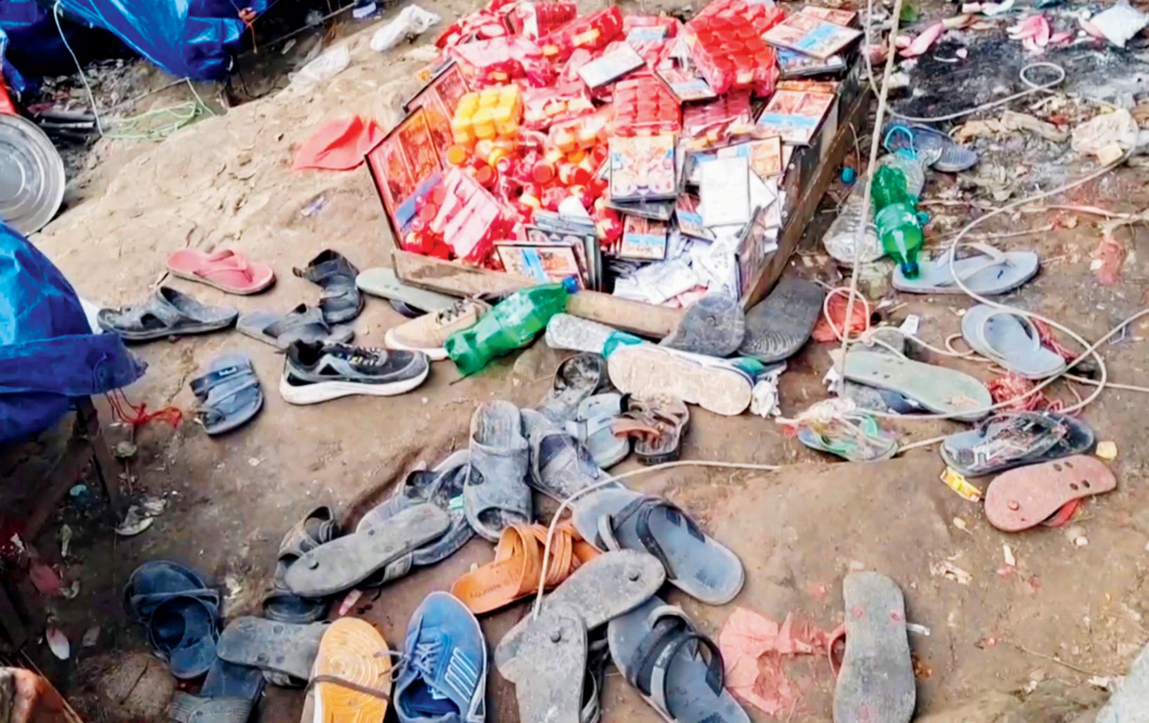 હરિદ્વારમાં મનસાદેવી મંદિરમાં નાસભાગની ઘટના પછી કરુણ દૃશ્યો સર્જાયાં હતાં. સેંકડો ભક્તો દેવીના ચડાવા માટે લાવેલા એ સામગ્રી, ચૂંદડીઓ વગેરે સાથે ભક્તોનાં ચંપલો રસ્તા પર અસ્તવ્યસ્ત ફેલાયેલાં જોવા મળ્યાં હતાં.