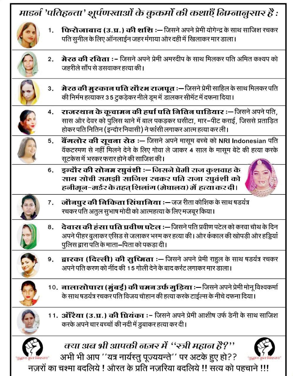 પત્નીપીડિત સંસ્થા ‘પૌરુષ’ પતિઓને ક્રૂરતાથી મારી નાખનારી સોનમ રઘુવંશી જેવી ૧૧ સ્ત્રીઓના ચહેરા પૂતળા પર લગાવીને એને બાળશે
