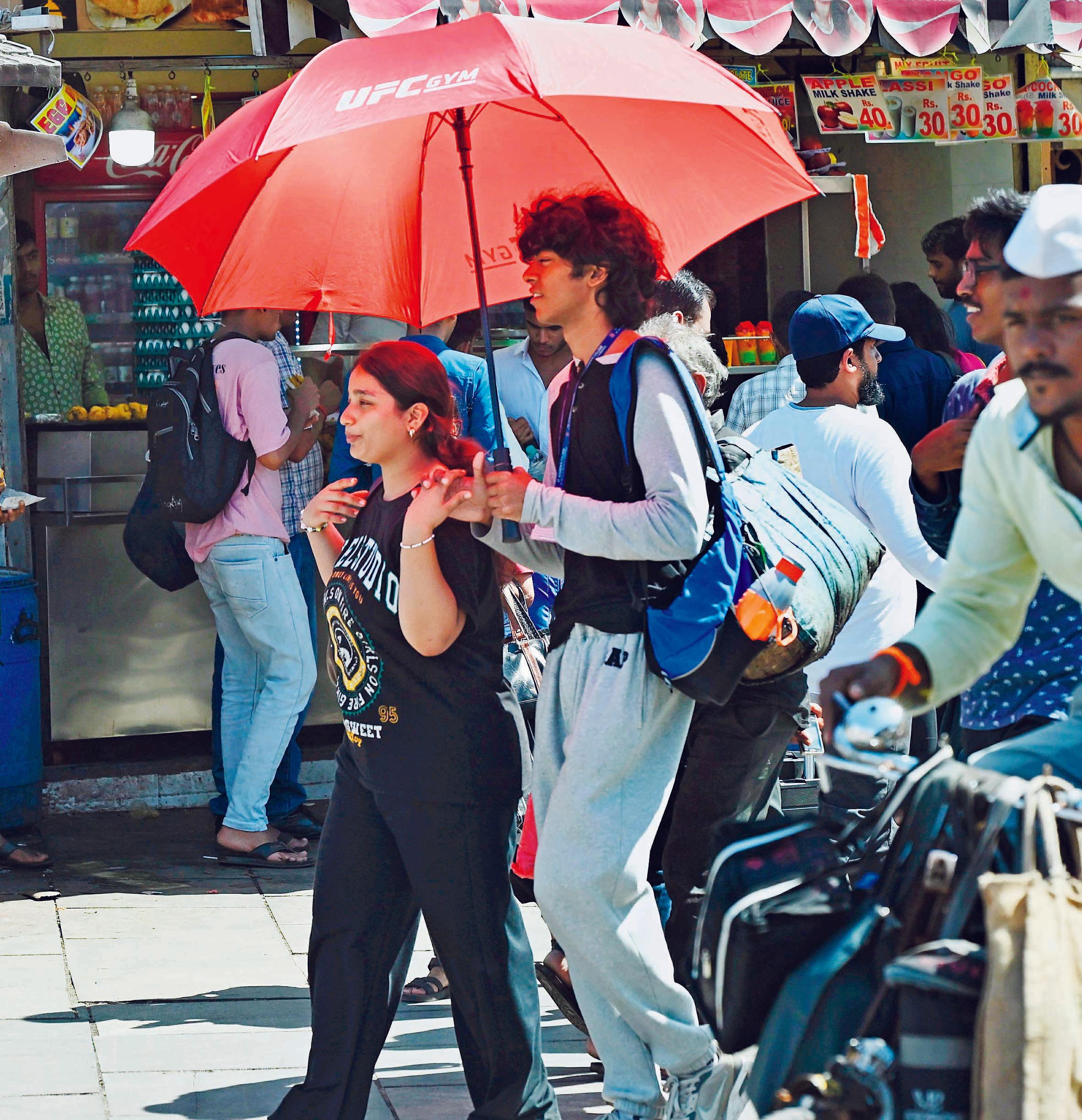મુંબઈમાં વરસાદ બંધ થાય ત્યારે મુંબઈગરાઓ ગરમીથી પરેશાન થઈ જાય છે. વાદળછાયું વાતાવરણ રહેવાને લીધે ઉકળાટ પણ વર્તાય છે. બુધવાર કરતાં ગઈ કાલે તાપમાનમાં સરેરાશ ૦.૫ સેલ્સિયસનો ઘટાડો થયો છે, પણ હજી ઠંડક શરૂ ન થવાથી ખાસ બપોરના સમયે લોકો તાપથી બચવા છત્રી, બૅગ કે થેલી જેવું હાથમાં જે હોય એનો સહારો લેતા જોવા મળ્યા હતા. મુંબઈમાં હવામાં ભેજનું પ્રમાણ સરેરાશ ૮૫ ટકા રહ્યું હતું એટલે બફારો પણ વધુ અનુભવાયો હતો. હવામાન ખાતાએ મુંબઈ અને આસપાસના વિસ્તારોમાં આગામી બે દિવસ યલો અલર્ટ એટલે કે સામાન્યથી ભારે વરસાદ પડવાની આગાહી કરી છે. જોકે મુંબઈગરાઓ વીક-એન્ડ હોવાથી વરસાદમાં પણ મન મૂકીને ગરબા કરવા તૈયાર છે. તસવીર : સૈયદ સમીર અબેદી