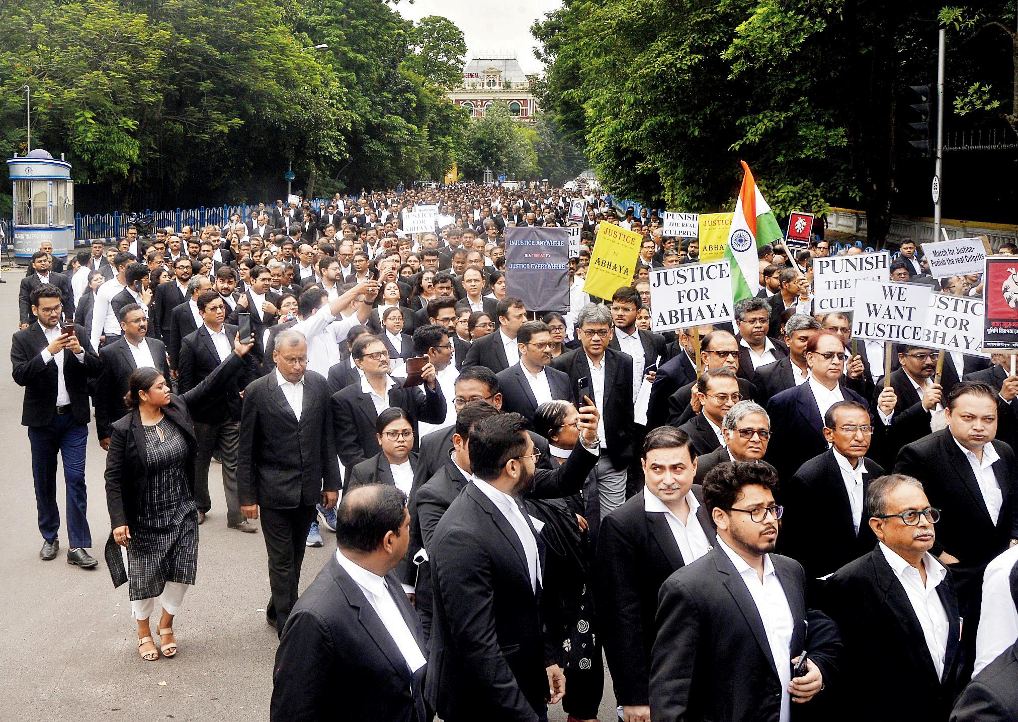કોલકાતા હાઈ કોર્ટના વકીલો પણ ગઈ કાલે ટ્રેઇની ડૉક્ટર સાથે થયેલા જઘન્ય બનાવના વિરોધમાં રસ્તા પર ઊતર્યા હતા