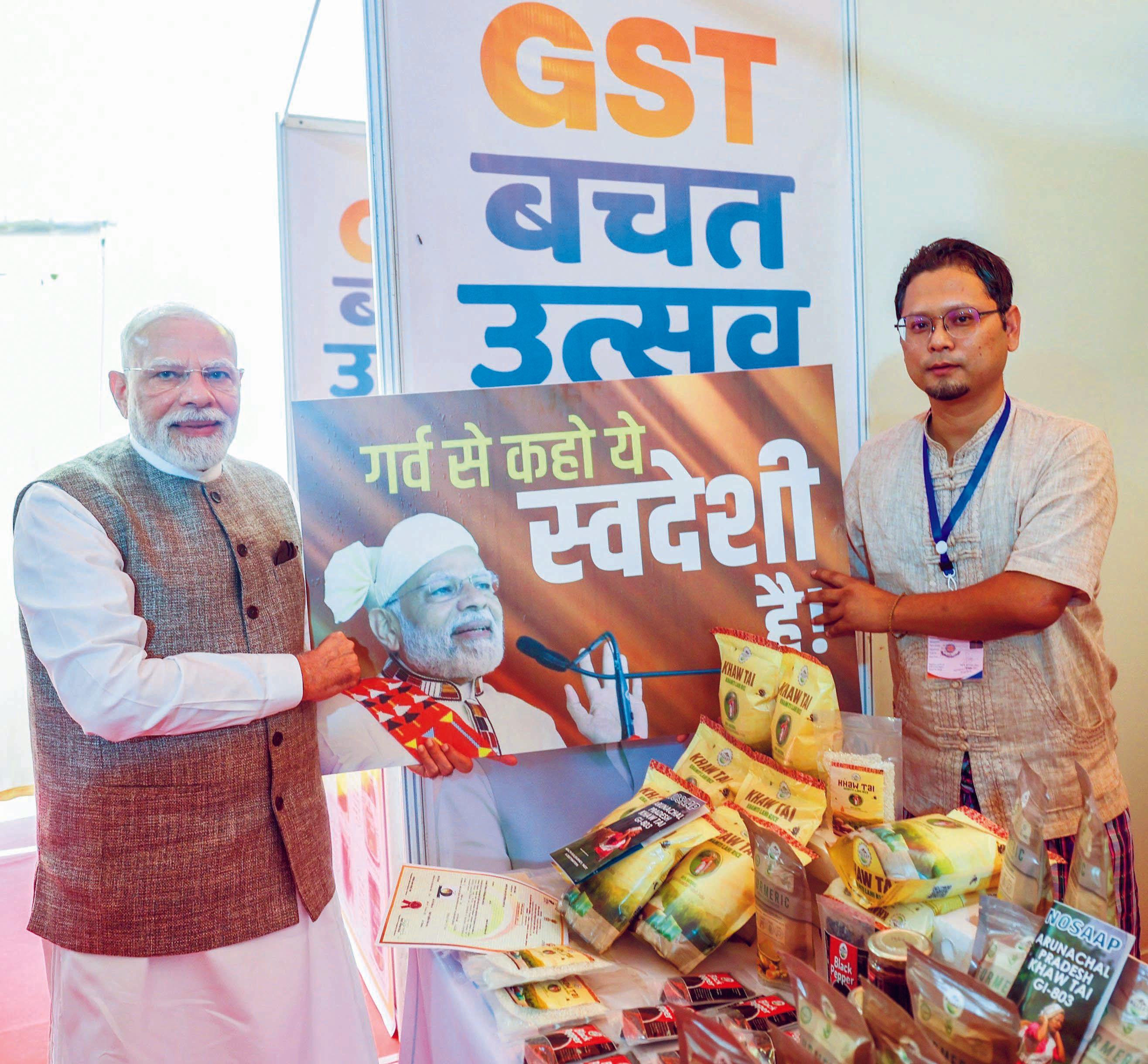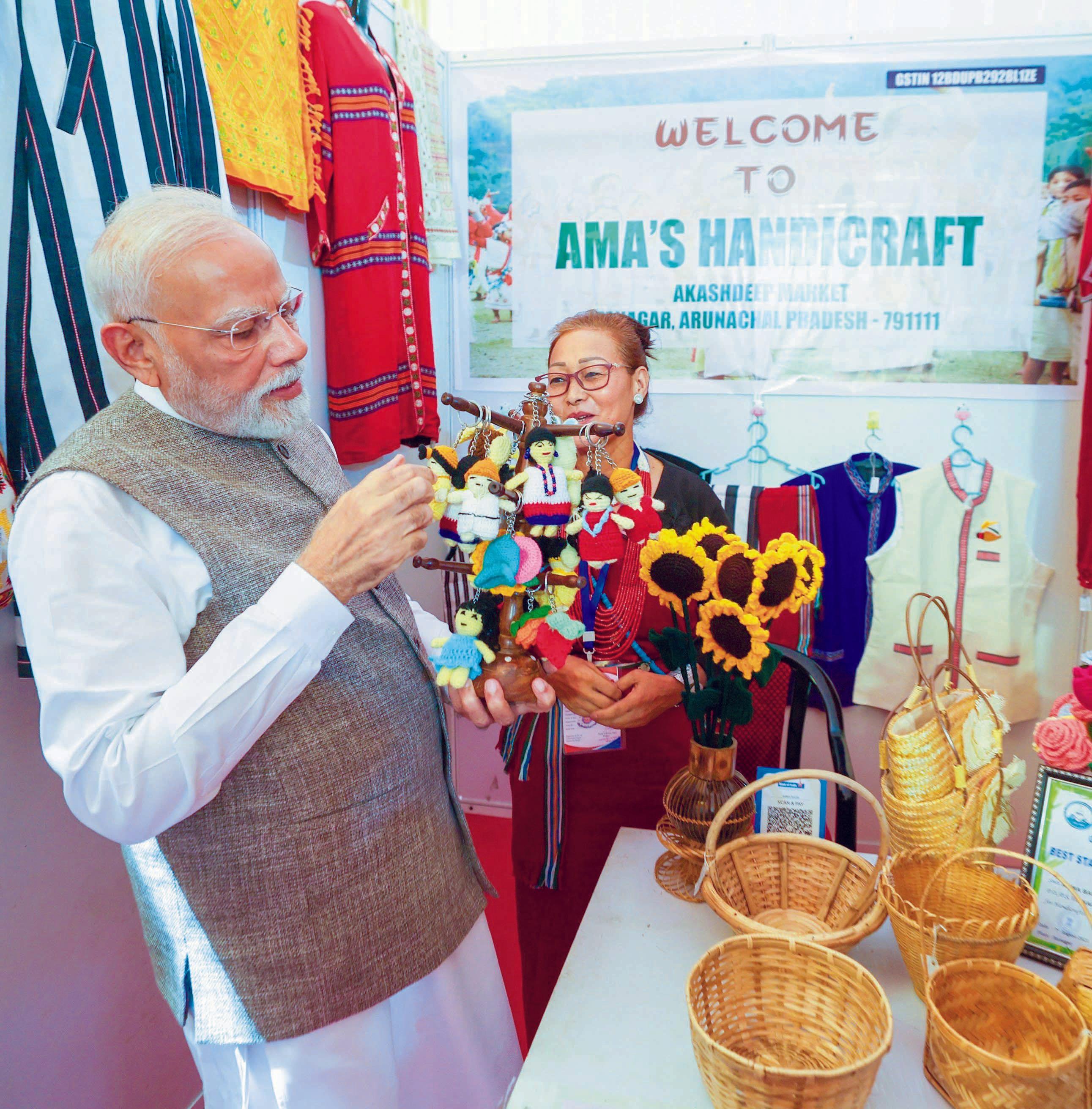 અરુણાચલ પ્રદેશના ઇટાનગરમાં આયોજિત સ્વદેશી વસ્તુઓના એક વેપારમેળામાં અલગ-અલગ સ્ટૉલ પર નરેન્દ્ર મોદી.