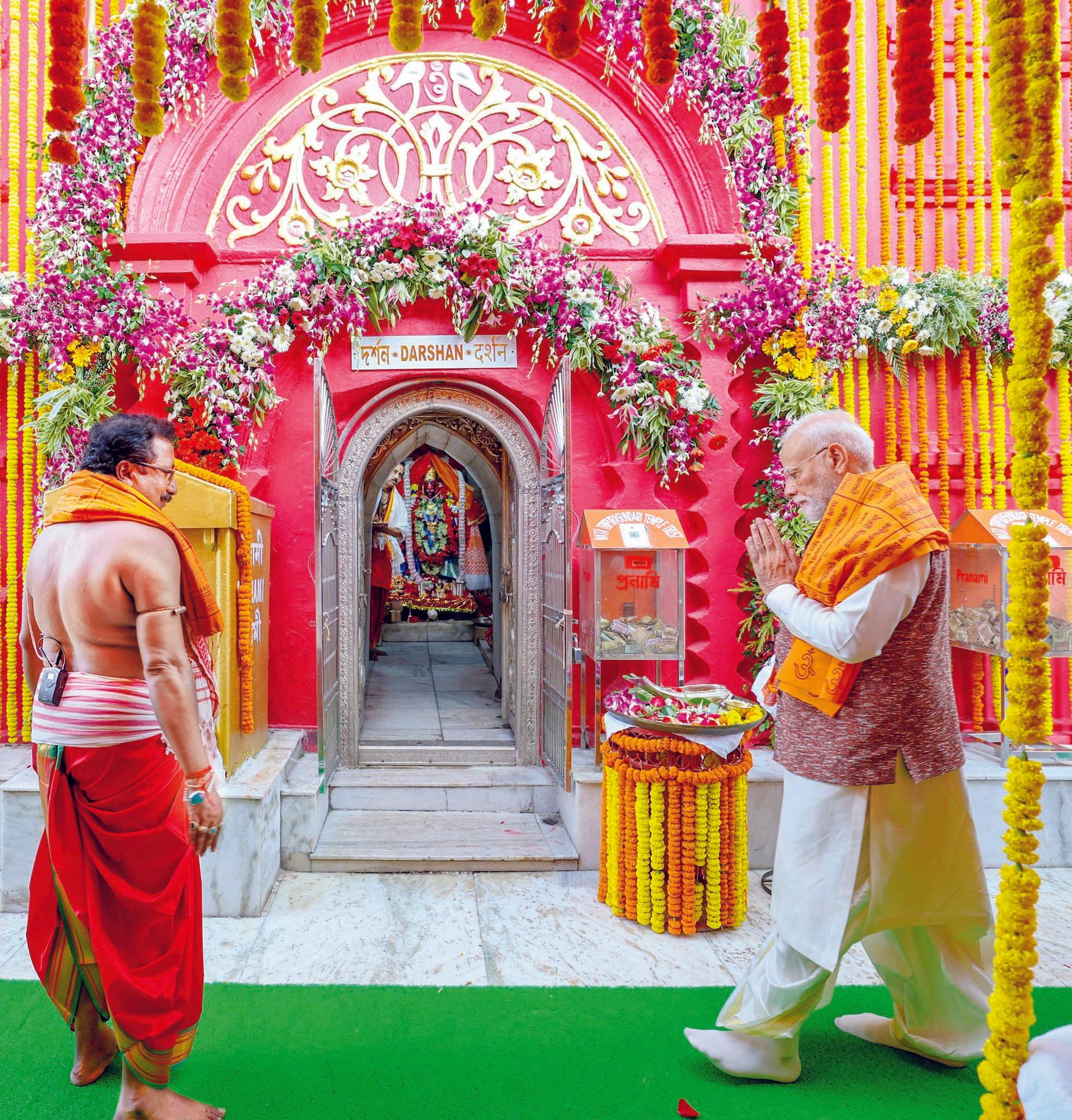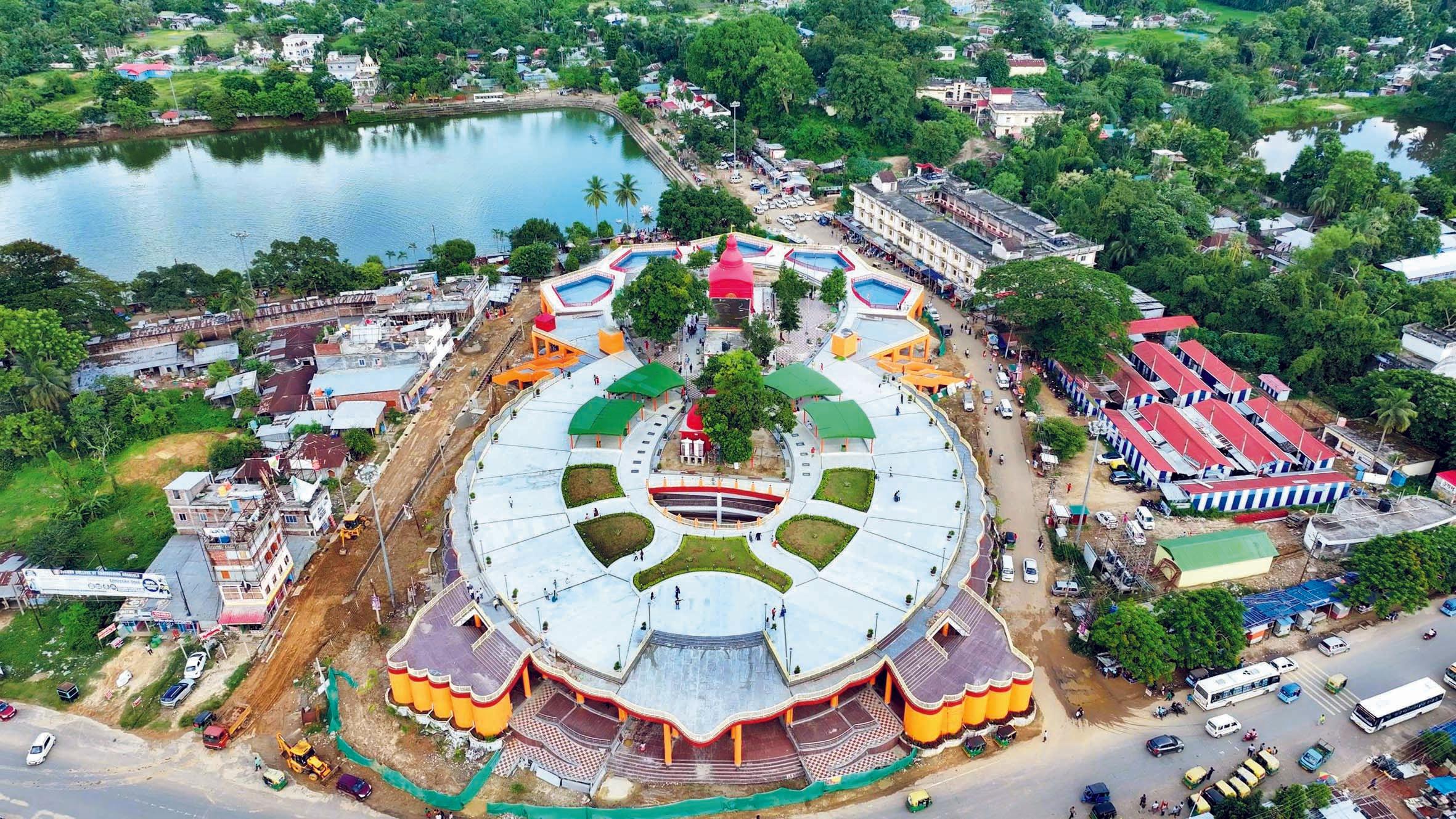 ત્રિપુરાનું પુનઃ વિકસિત માતા ત્રિપુરા સુંદરી મંદિર, એમાં પૂજા-દર્શન કરવા પહોંચેલા નરેન્દ્ર મોદી અને મંદિર પરિસરનો ભવ્ય એરિયલ વ્યુ.
