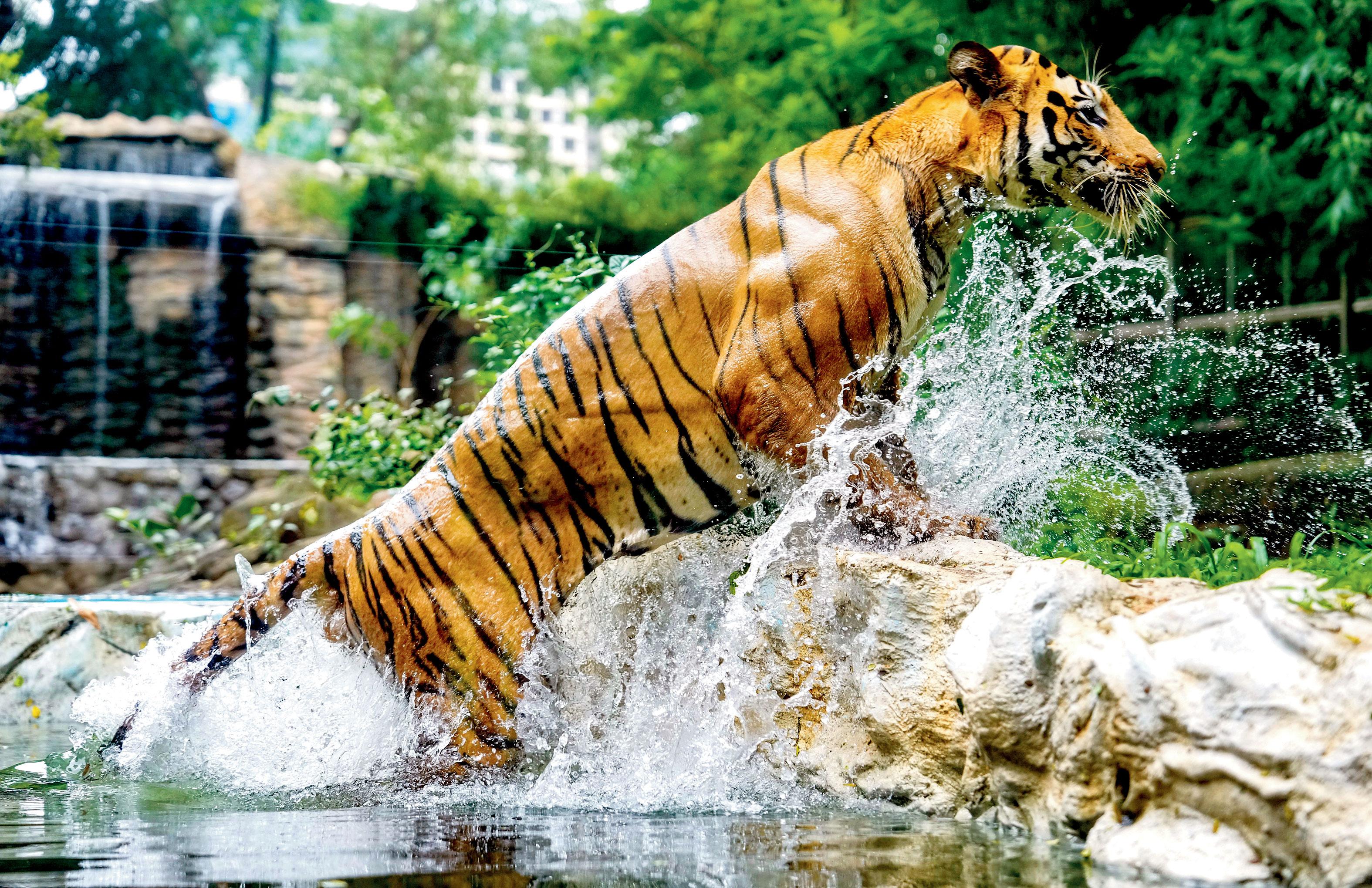 ગઈ કાલે ઇન્ટરનૅશનલ ટાઇગર ડે નિમિત્તે ભાયખલાના રાણીબાગમાં રૉયલ બેન્ગૉલ ટાઇગ્રેસ શક્તિ જળક્રીડા કરતી જોવા મળી હતી અને વિઝિટર્સે એને જોવાનો લહાવો લીધો હતો.