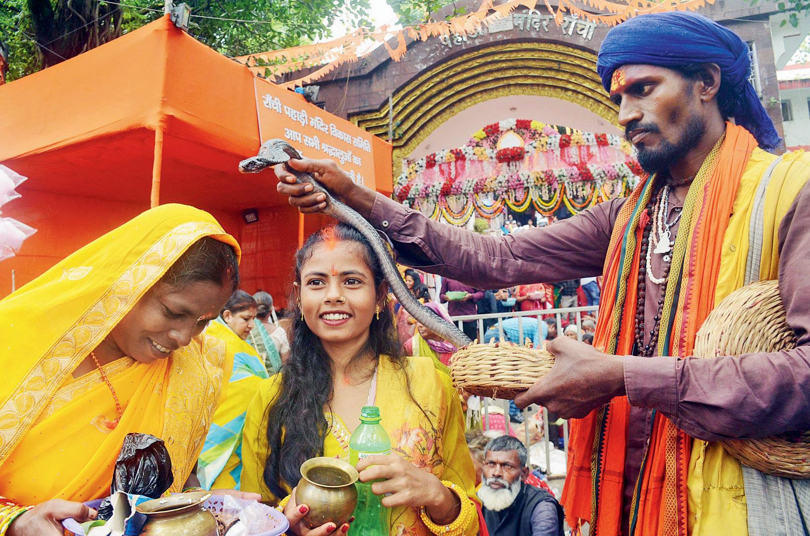 ગઈ કાલે પ્રયાગરાજમાં અને રાંચીમાં નાગપંચમી નિમિત્તે નાગદેવતાના આશીર્વાદ લેતા લોકો.