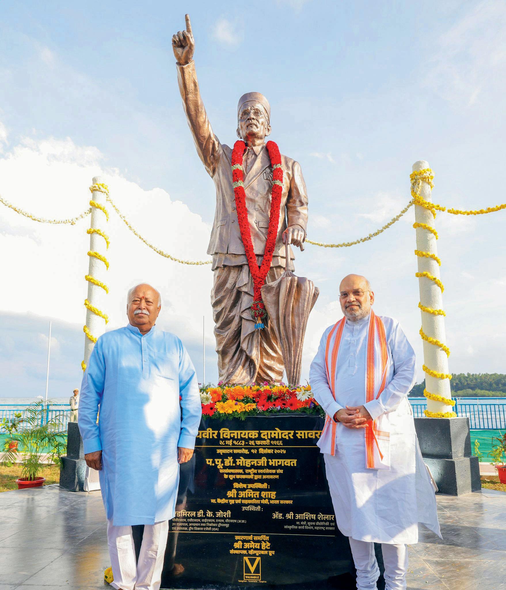 ગઈ કાલે કેન્દ્રીય ગૃહપ્રધાન અમિત શાહ અને રાષ્ટ્રીય સ્વયંસેવક સંઘના સરસંઘચાલક મોહન ભાગવતે આંદામાન-નિકોબાર દ્વીપસમૂહમાં વિનાયક દામોદર સાવરકરની પ્રતિમાનું અનાવરણ કર્યું હતું. આ અવસરે અમિત શાહે કહ્યું હતું કે ‘આંદામાન અને નિકોબાર માત્ર દ્વીપસમૂહ નથી, આ કેટલાય સ્વતંત્રતાસેનાનીઓના ત્યાગ, સમર્પણ અને દેશભક્તિની બનેલી તપોભૂમિ છે. વીર સાવરકરજીનું જીવન માતૃભૂમિ પ્રત્યે અથાગ પ્રેમ અને રાષ્ટ્ર પ્રત્યે પ્રાણ ન્યોછાવર કરવાની પ્રેરણા આપે છે.’