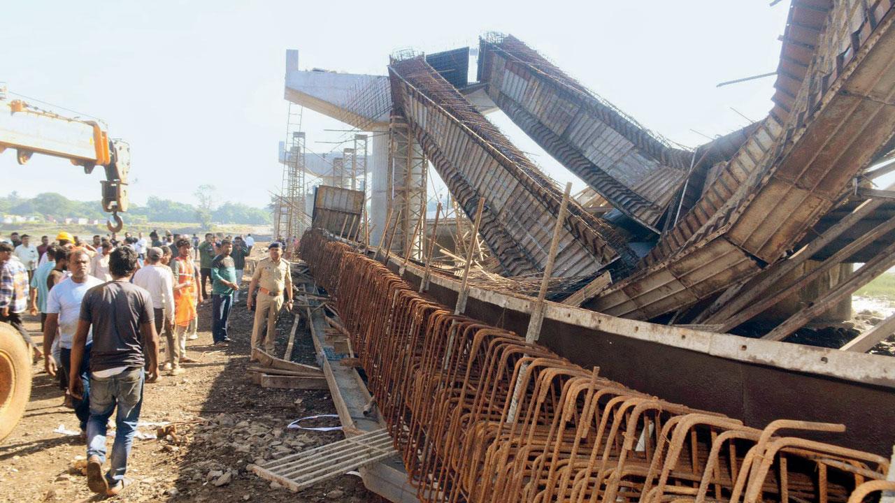 વલસાડ પાસે ઔરંગા નદી પર બની રહેલા બ્રિજમાં સ્ટ્રક્ચર તૂટી પડ્યું, પાંચ શ્રમિકોને ઈજા