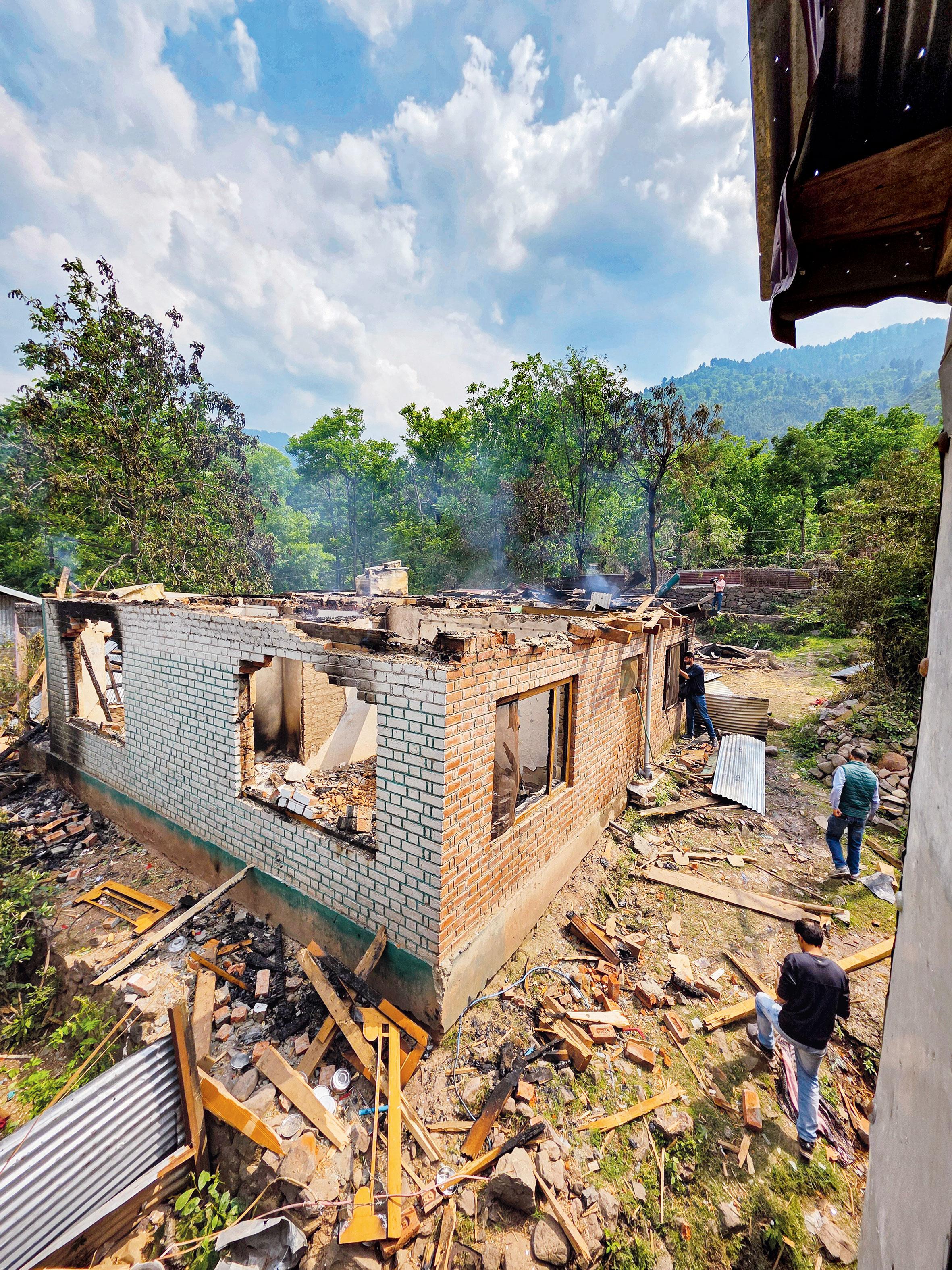 ગઈ કાલે ઉરી પાસે પાકિસ્તાની ફાયરિંગમાં નષ્ટ થયેલું ઘર અને પુંછમાં ભંગાર થઈ ગયેલી કાર.